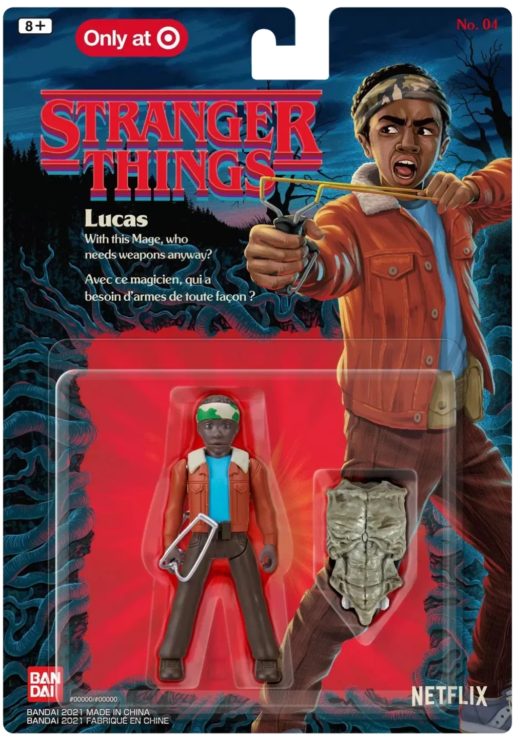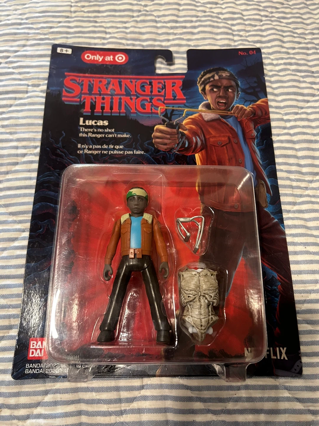 Selling a brand new, BANDAI in-box Stranger Things Lucas action figure! Number 4 in series. This is part of a series where you collect all 5 figures to build the Demogorgon. Perfect for any Stranger Things fan or collector!