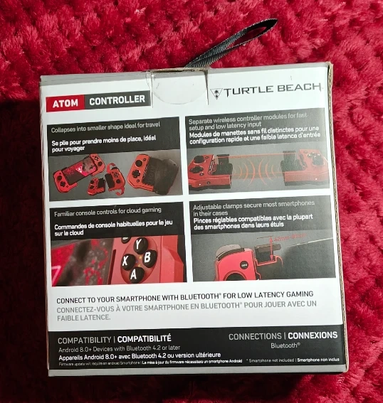 Selling a near mint Turtle Beach Atom Controller for Android smartphones! It's still in its original packaging and includes all components. This mobile game controller connects to your smartphone with Bluetooth for low latency gaming. It collapses into a smaller shape, making it ideal for travel. The adjustable clamps secure most smartphones in their cases. Comes with the box!