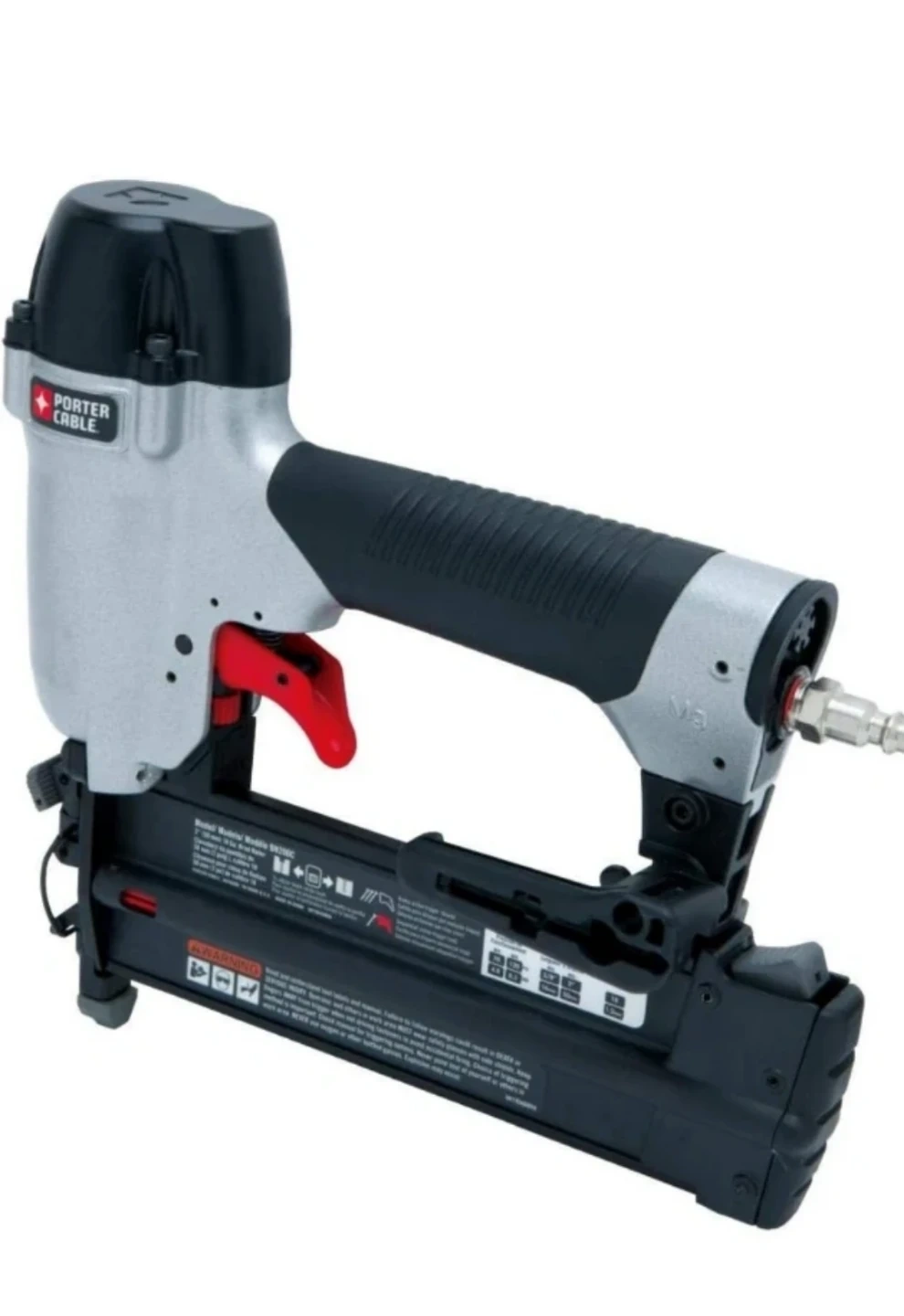 This is a Porter-Cable pneumatic 18 gauge brad nailer. It features a maintenance-free motor and tool-free jam release. It also has a sequential style trigger and adjustable depth of drive