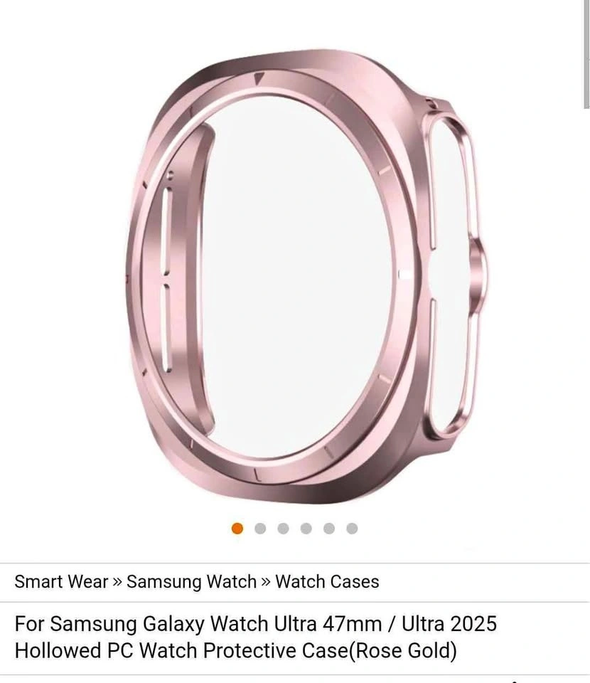 This is a 2-pack of protective cases for the Samsung Galaxy Watch Ultra 47mm. One case is rose gold and the other is transparent. They are made of hollowed PC material.