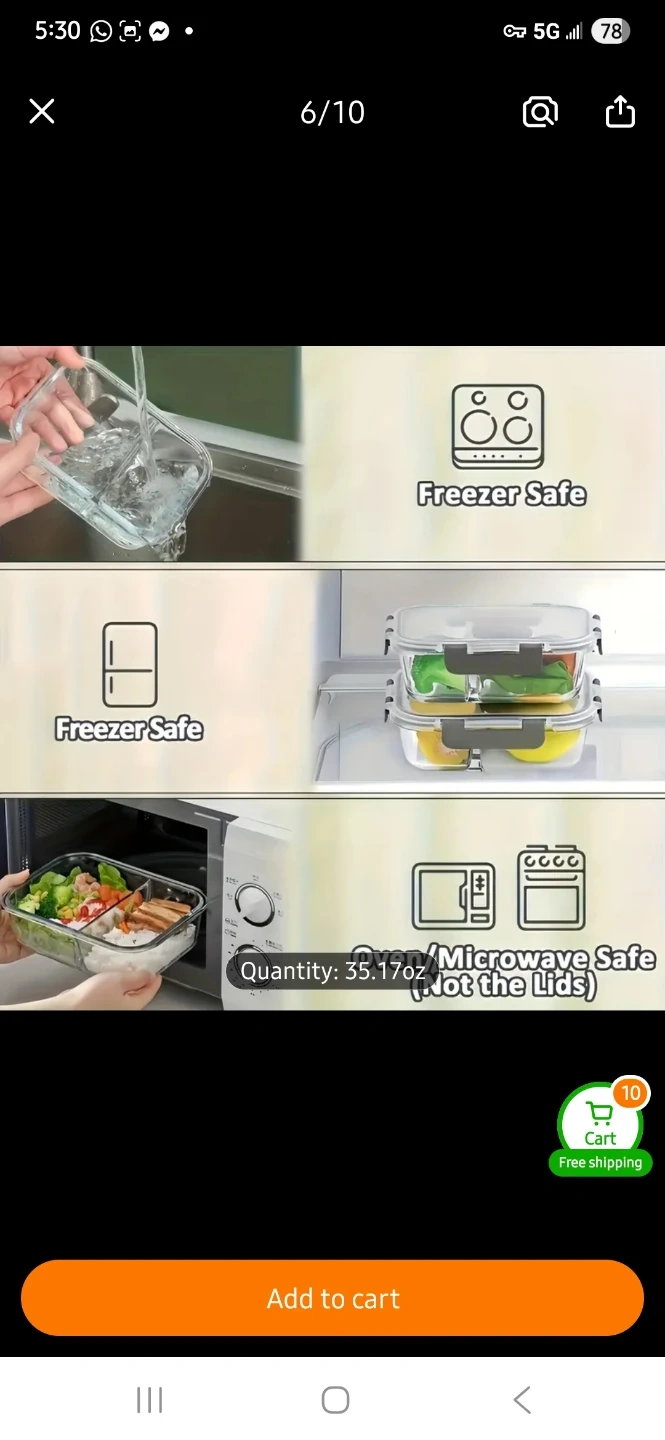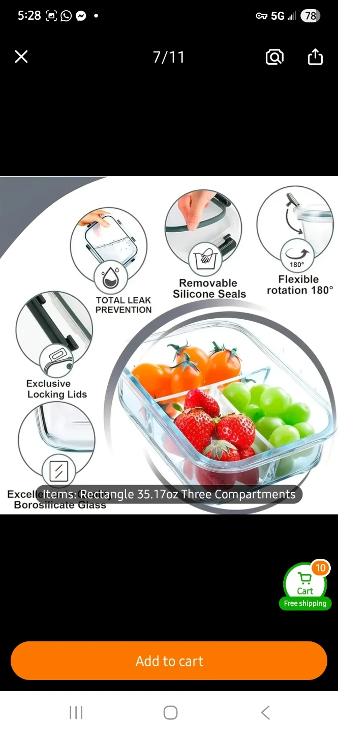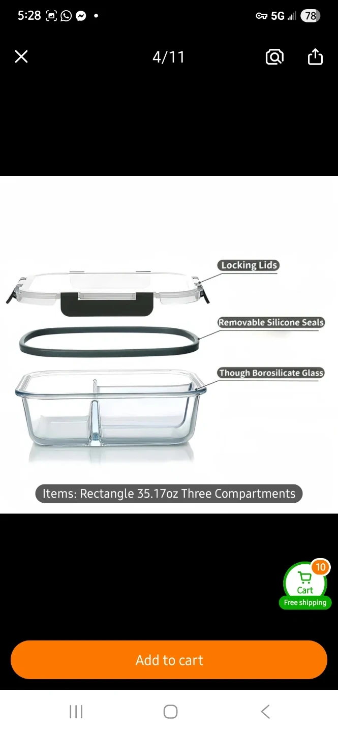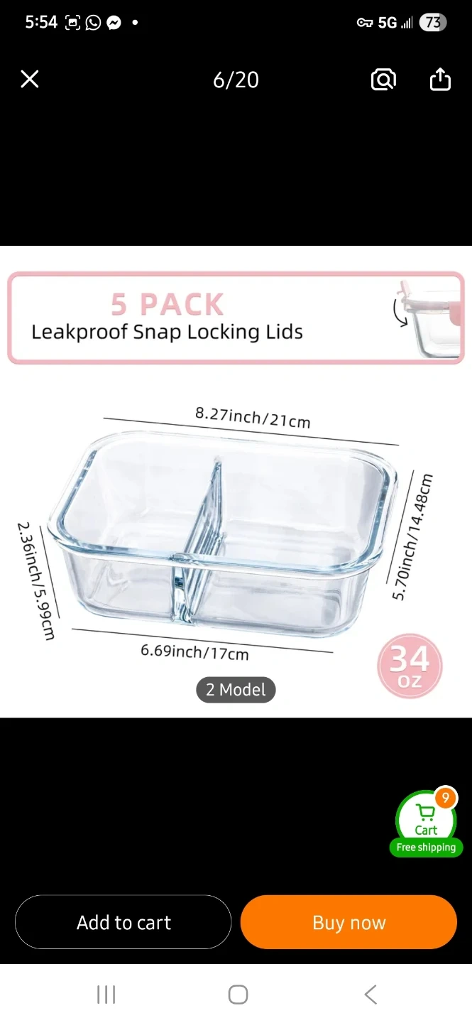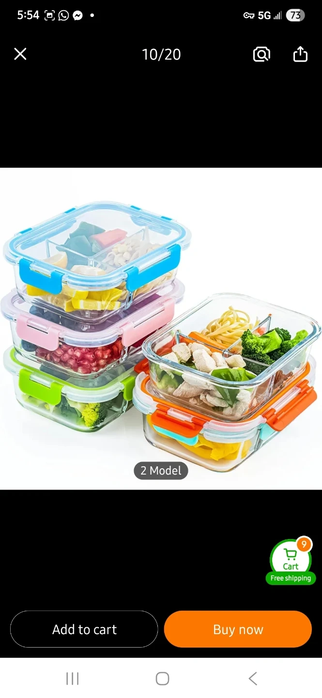 These glass food storage containers are freezer, microwave, and oven safe. They come in 2 or 3-section options and have leakproof snap-locking lids. Glass material is durable and easy to clean. 5 different colours available in the set.