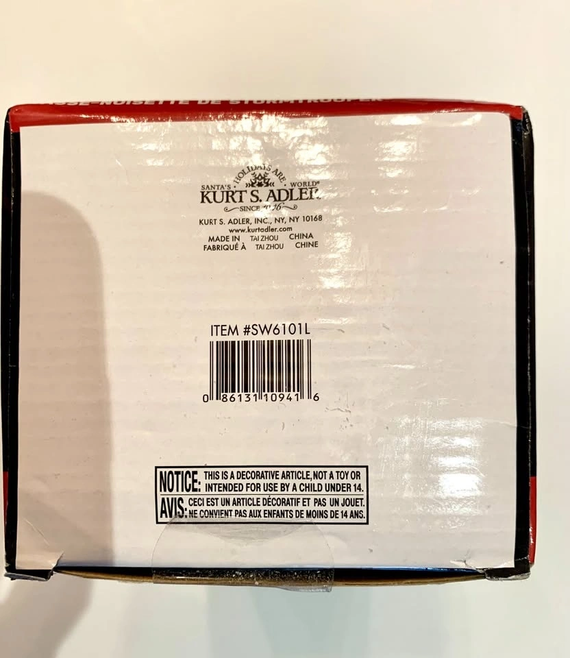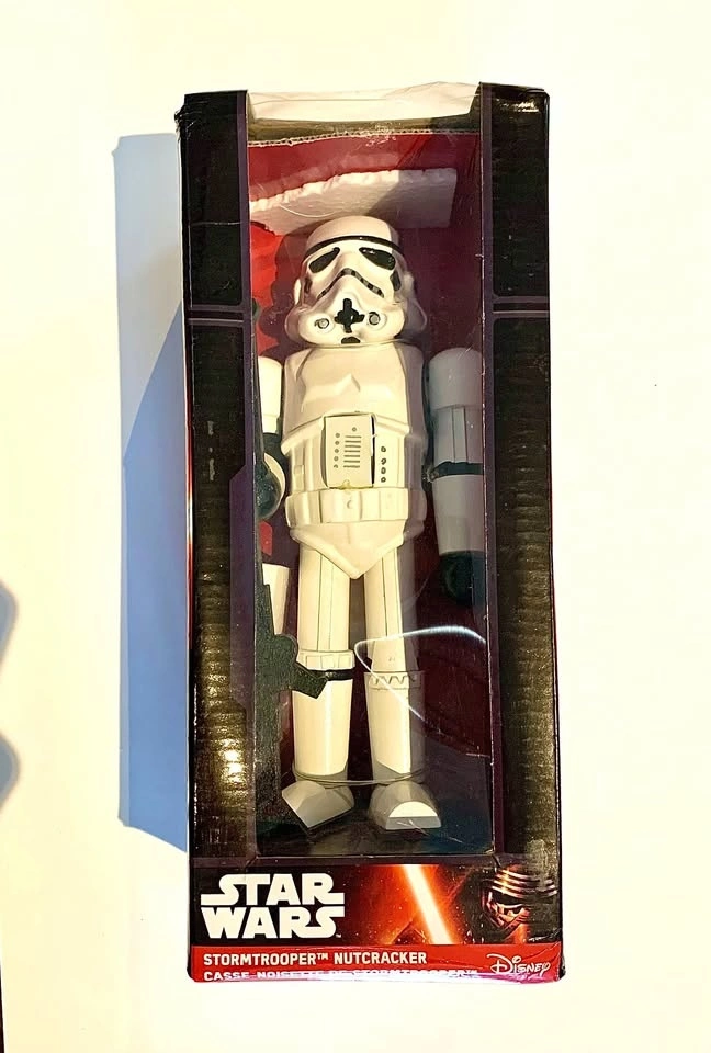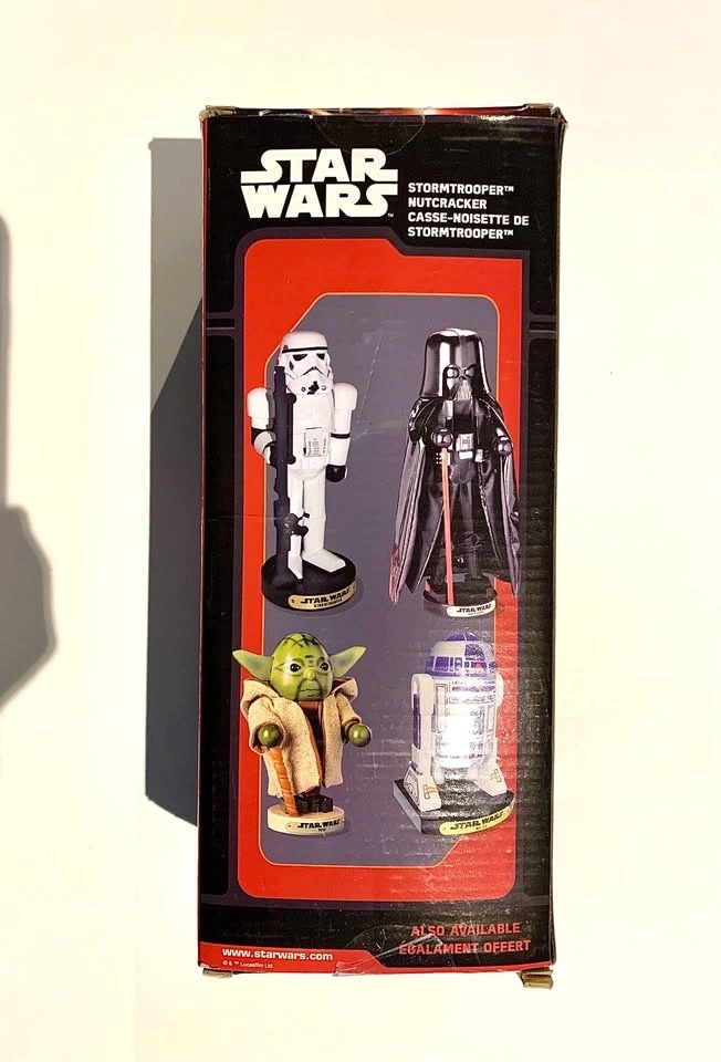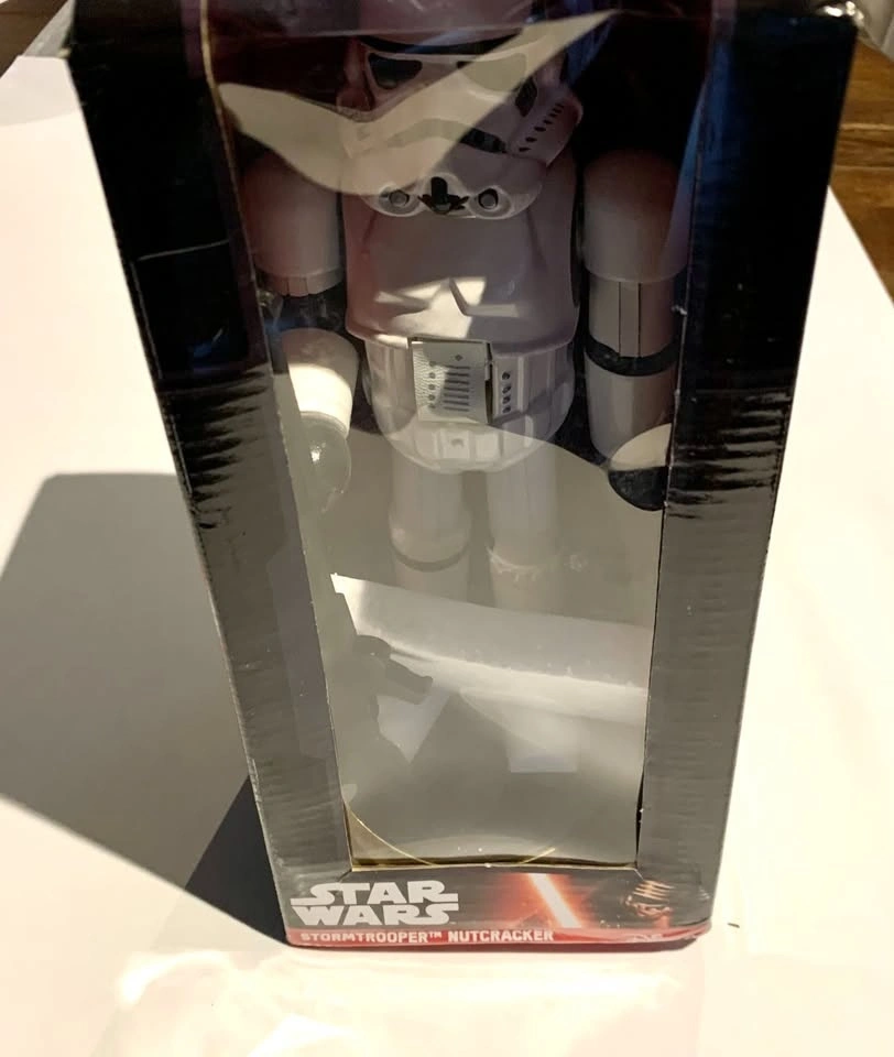 Box is in good shape but does have some marks/scratches. Package is 12 inches in height and stormtrooper is approximately 9 inches in height.