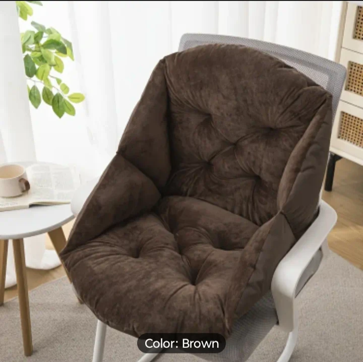 This plush seat cushion is super soft and comfy. It's a nice deep brown colour and fits most chairs. Adds extra padding for long seating periods!
