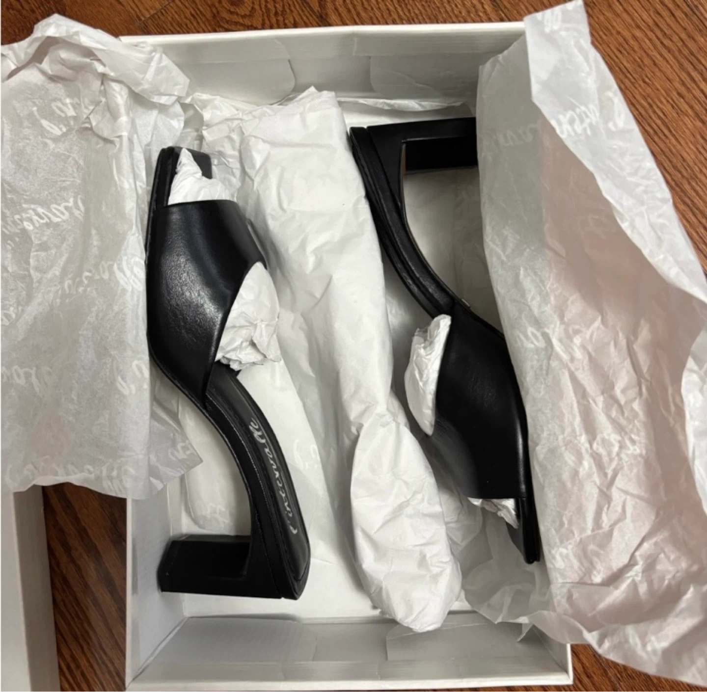 Like new; worn once - sold out in this colour! Selling because I didn’t end up liking the square toe on me. They look very well made. Best for a size 6.5 US, but could also fit a 7. These were made in Brazil, and of genuine leather. They have a 2.5” heel.
