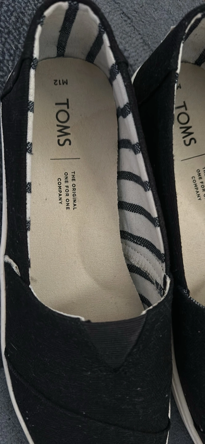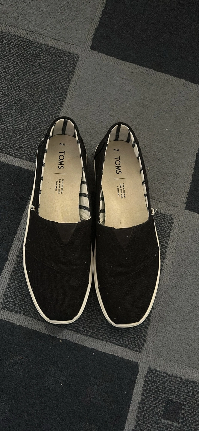 Men’s black casual wear TOMS shoes in size 12.