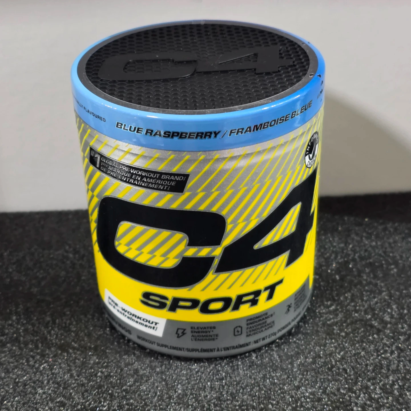 This is a C4 Sport pre-workout supplement in Blue Raspberry flavour. It's a 270g container. This supplement is designed to help elevate energy and performance during workouts.