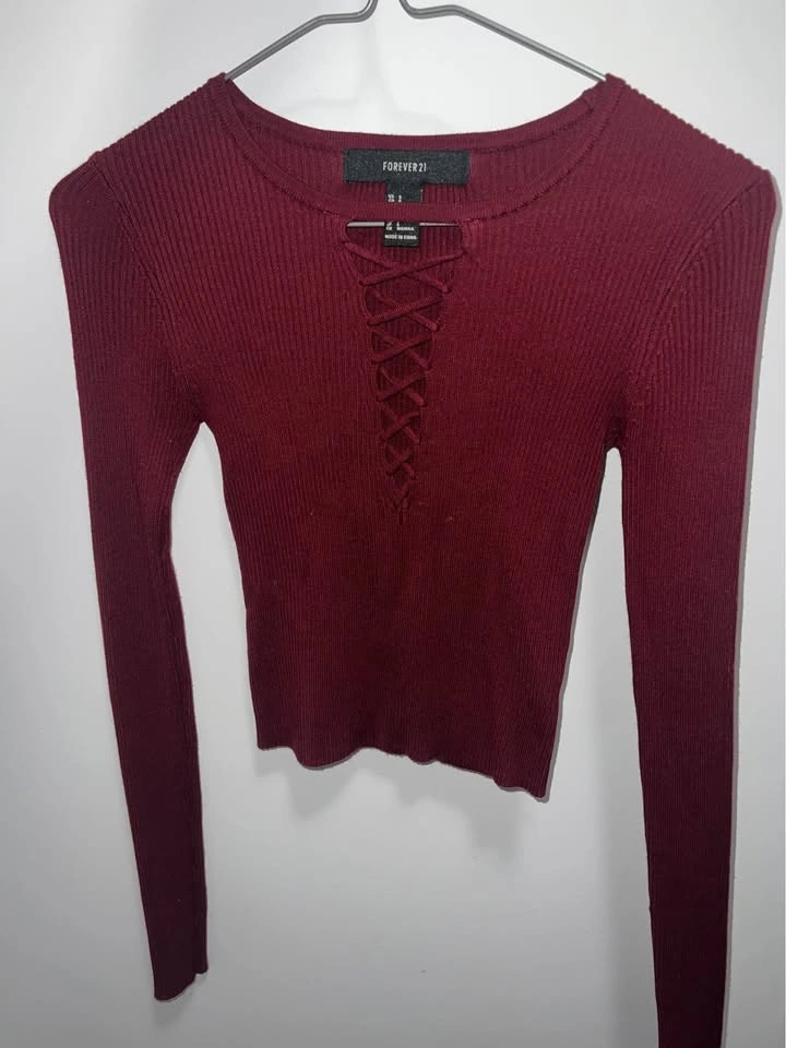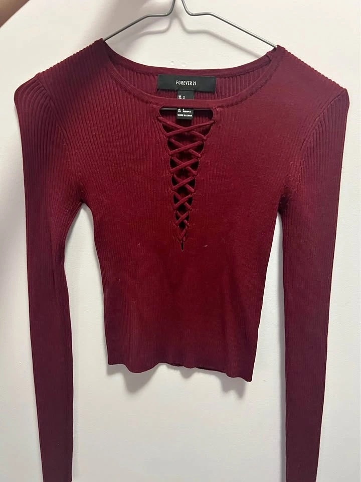 Forever 21 burgundy lace-up long sleeve top. Gently used but in great condition.