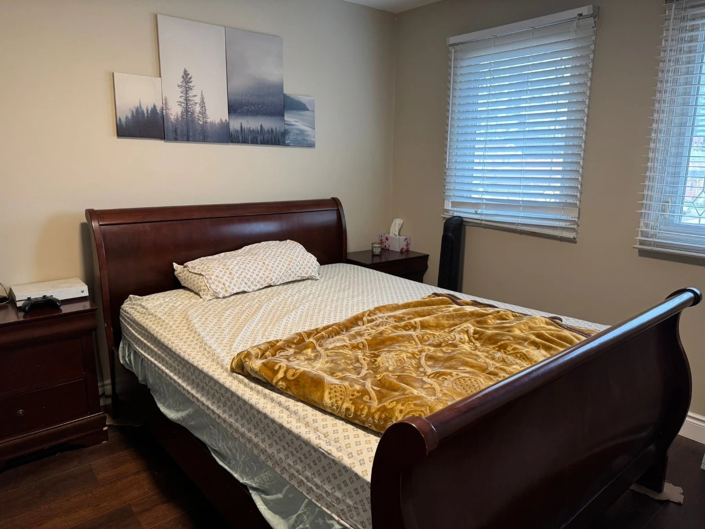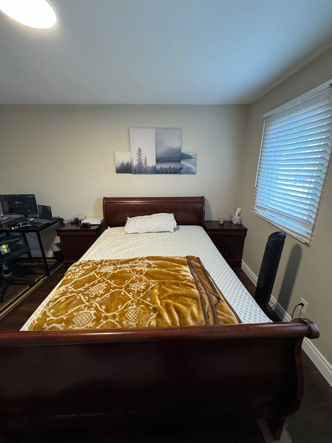 Dark Wood Sleigh Bed set