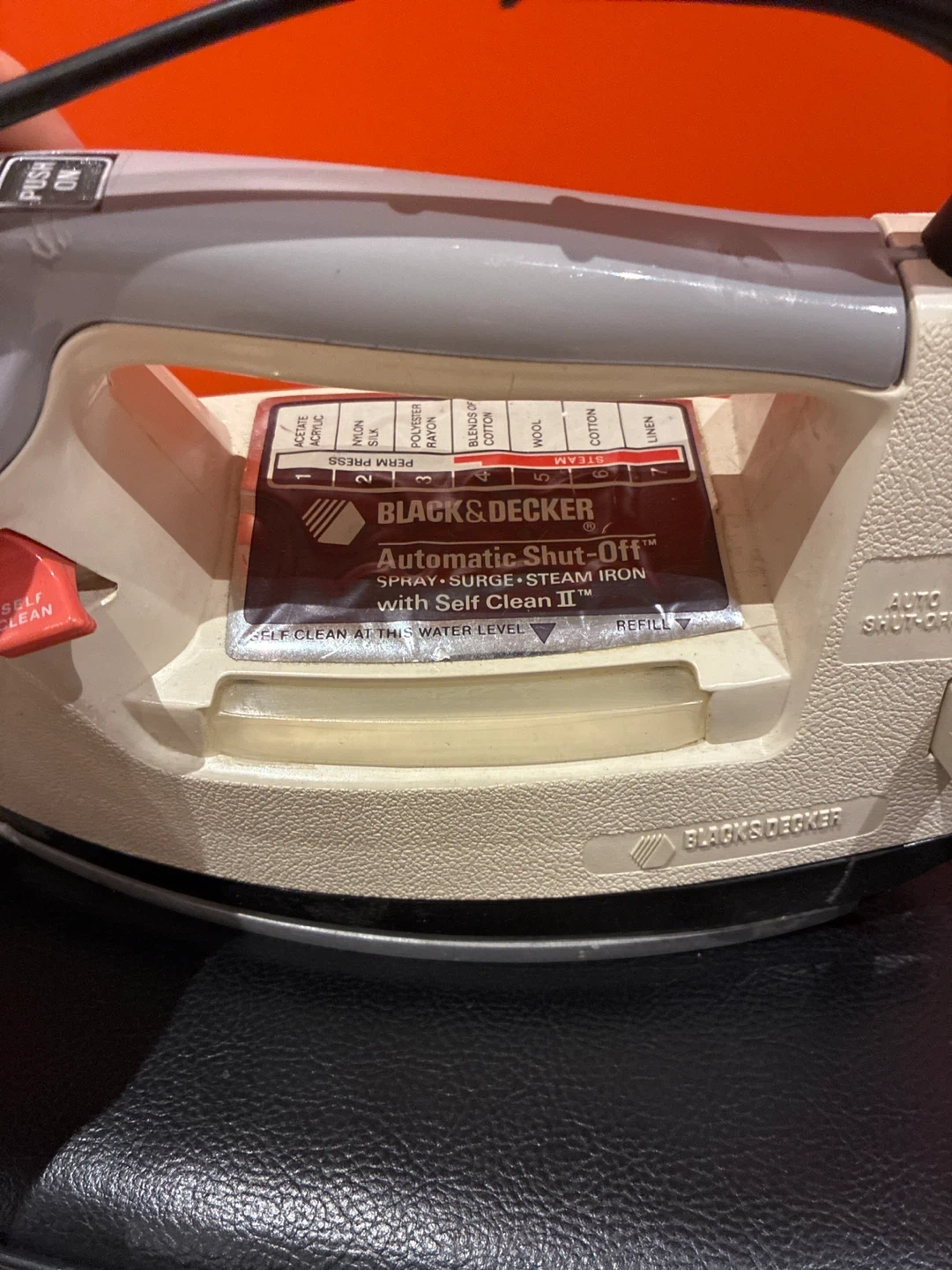 This is a Black & Decker Automatic Shut-Off steam iron. It features spray, surge, and steam functions with Self Clean II.