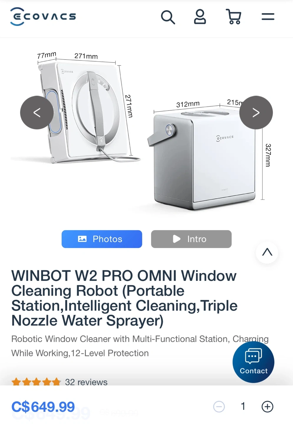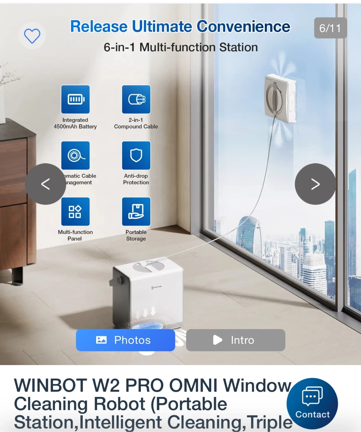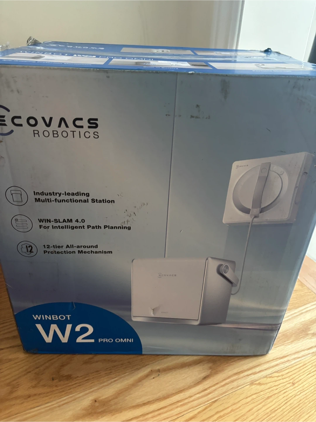 This ECOVACS WINBOT W2 PRO OMNI is an automatic window cleaning robot. It features an industry-leading multi-functional station with WIN-SLAM 4.0 for intelligent path planning. It also has a 12-tier all-around protection mechanism and a built-in battery.
