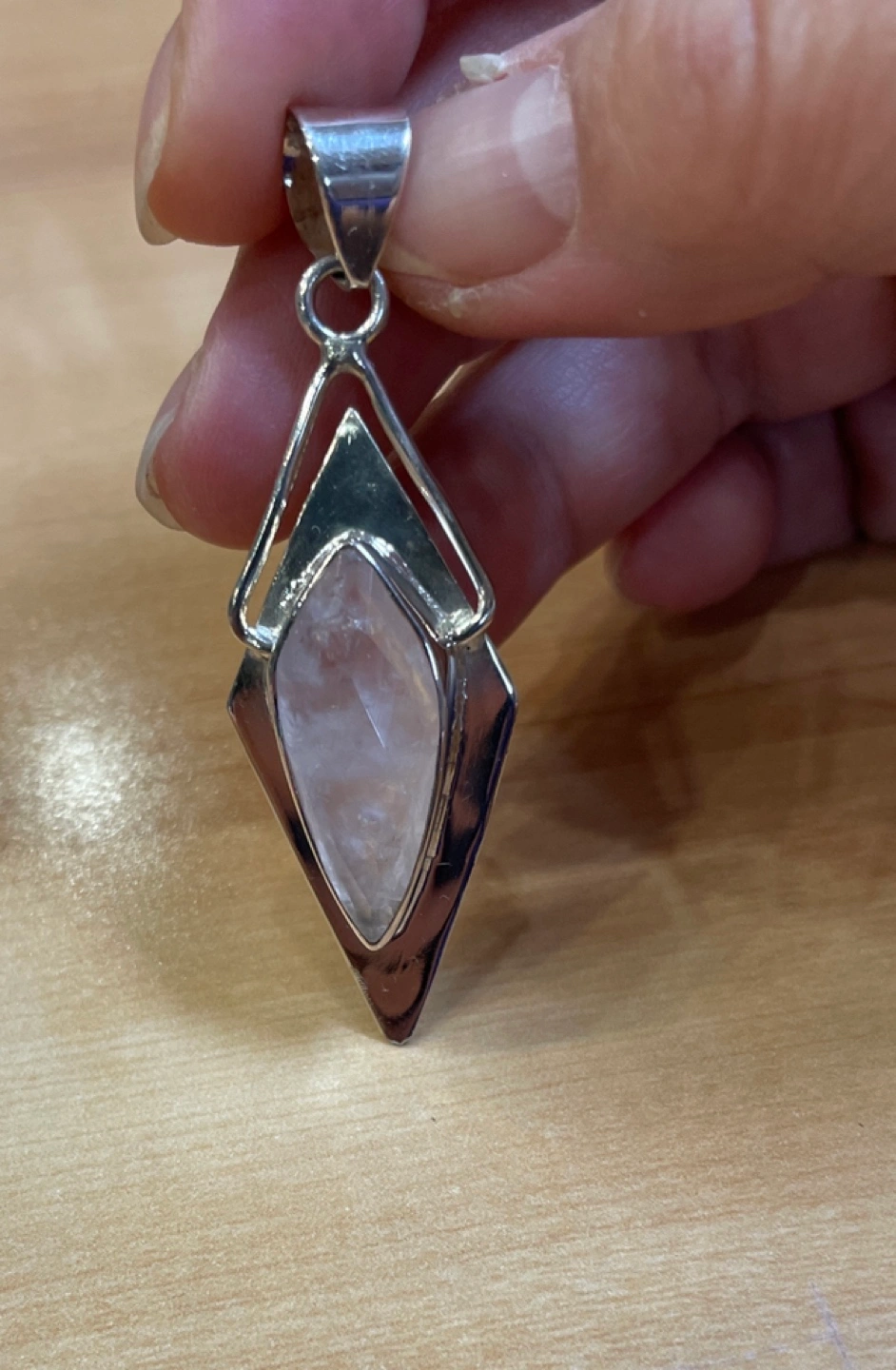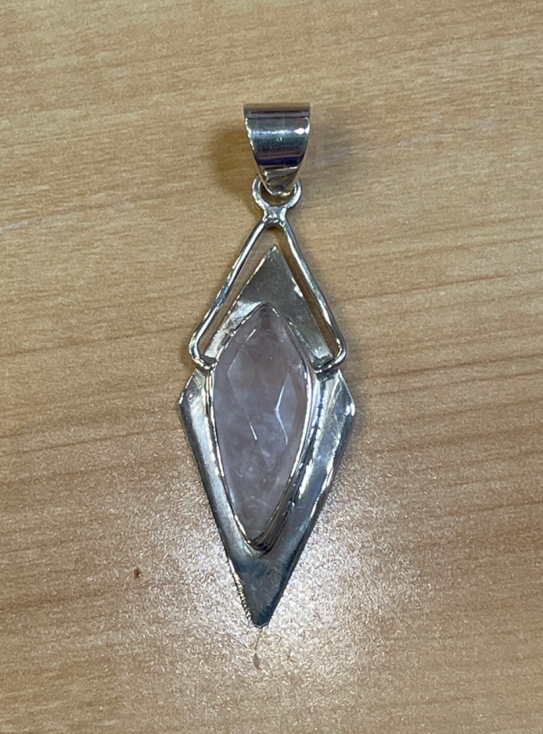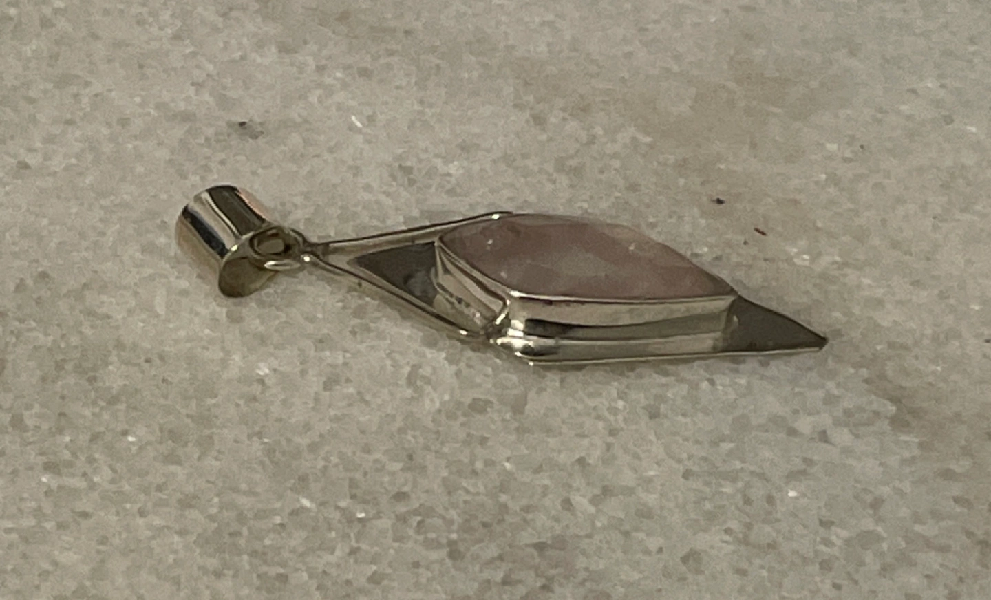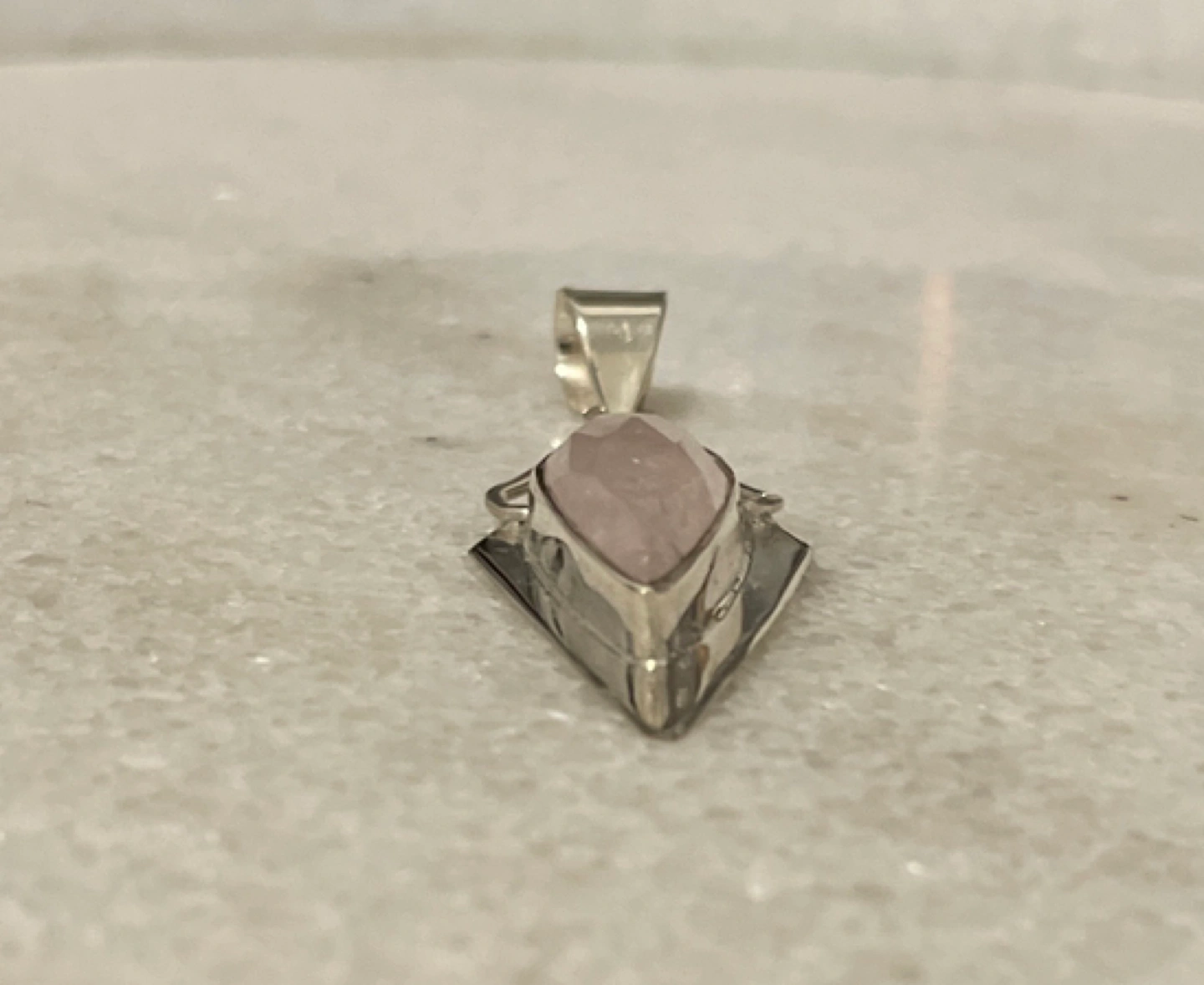 Raw Rose Quartz Semi Precious Gemstone Sterling Silver Pendant π