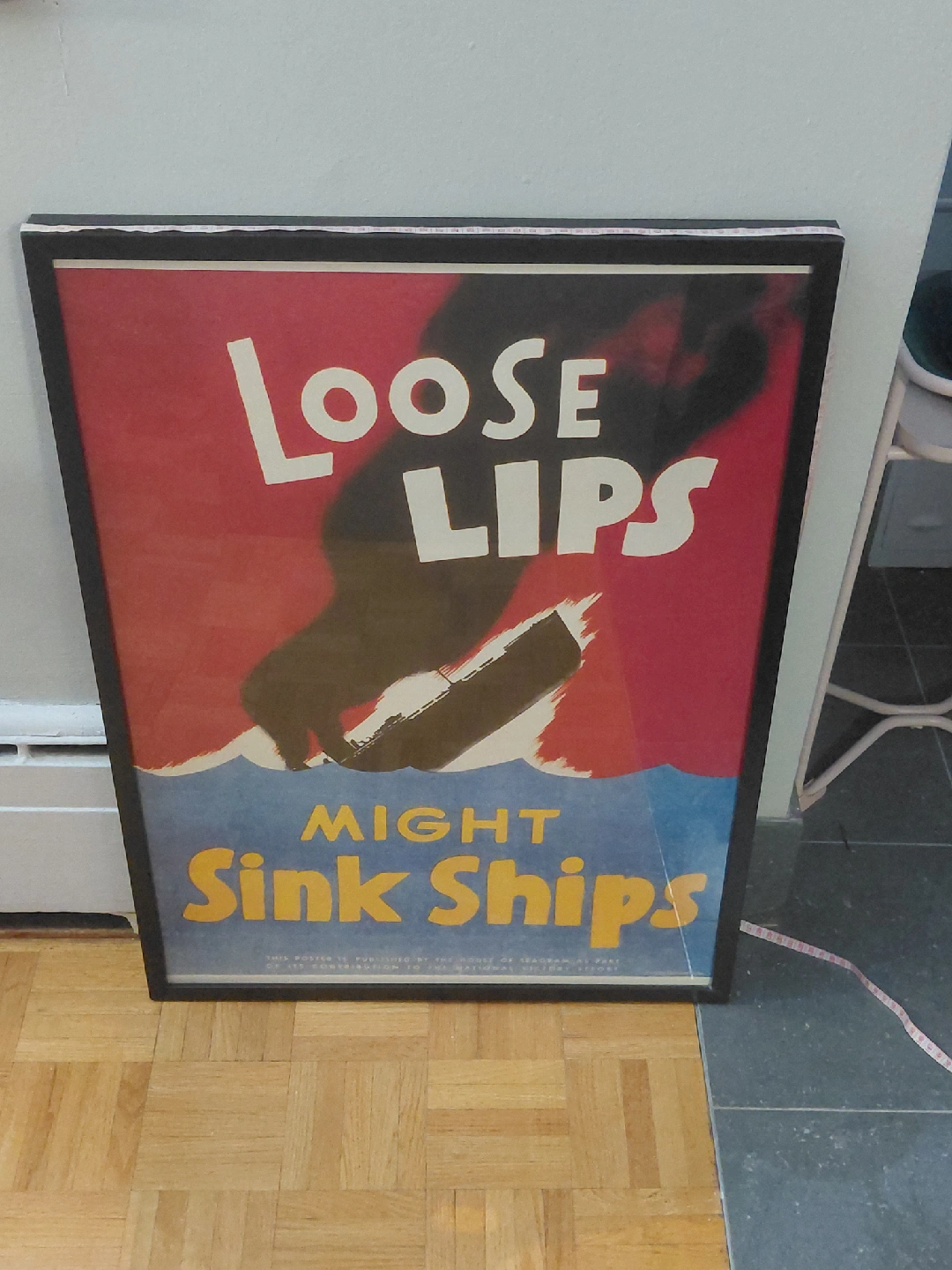 Selling an IKEA Ribba frame with a print. The print features the saying "Loose Lips Might Sink Ships". The frame is in good condition and ready to hang in your home!