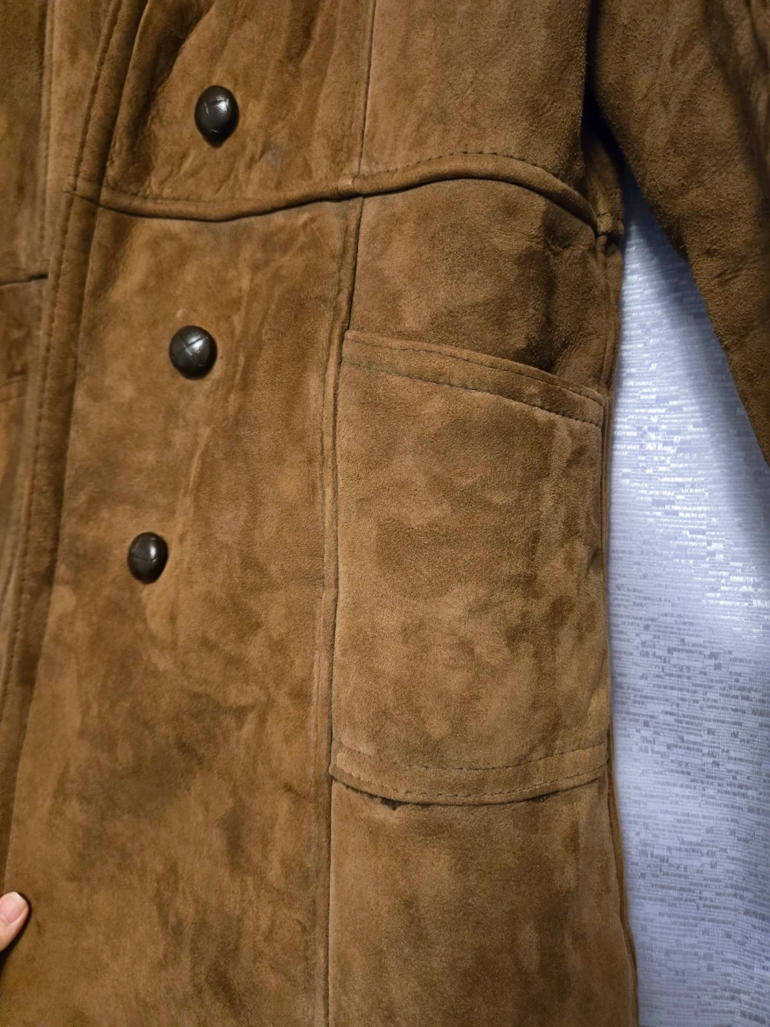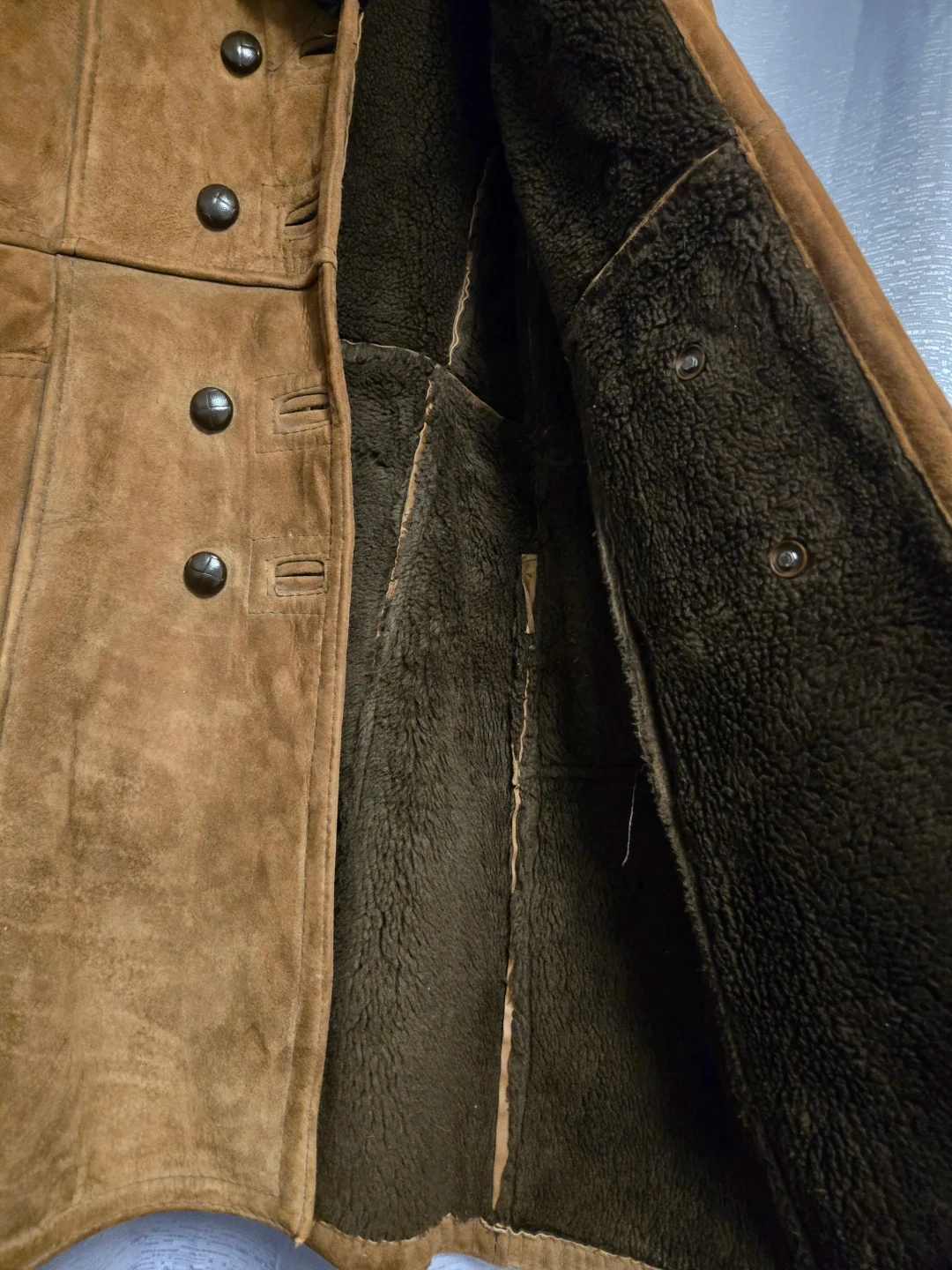 Vintage Brown Suede Double-Breasted Shearling Lined Coat