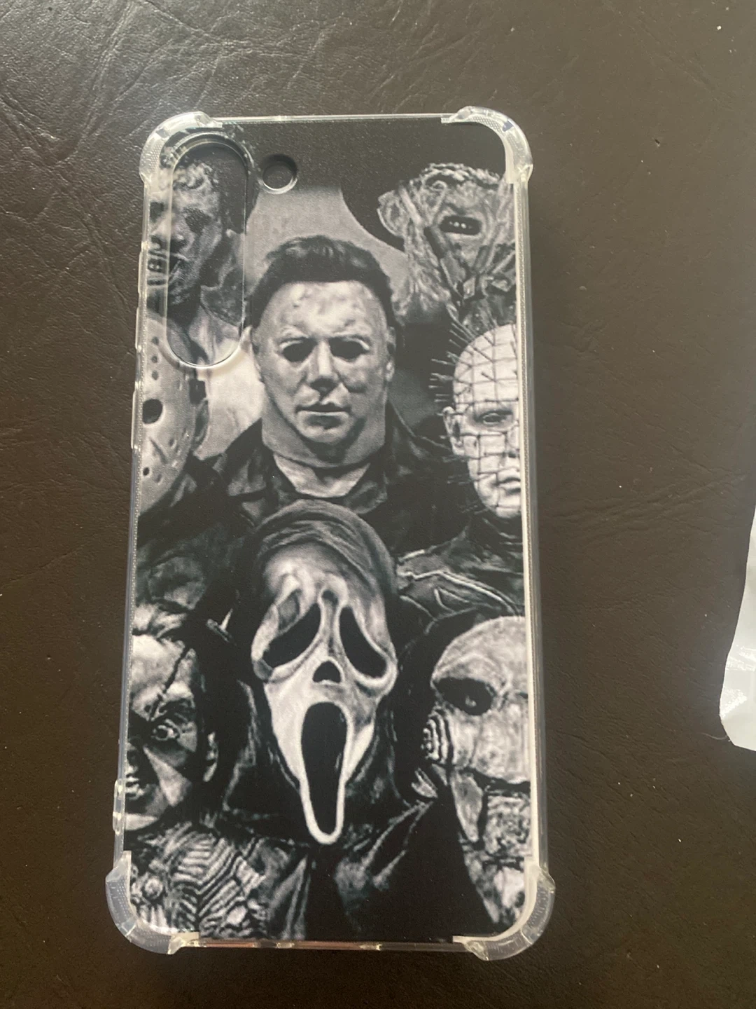 Selling a phone case for the Samsung Galaxy S23+ in Deep Grey. The case features a horror movie theme with iconic characters. It's a great way to protect your phone while showing off your love for horror films