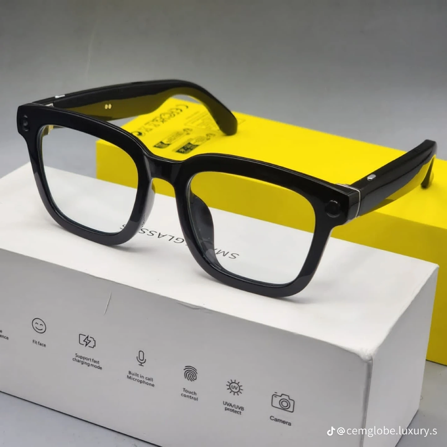 Selling a pair of intelligent glasses in black! These glasses have some cool features: