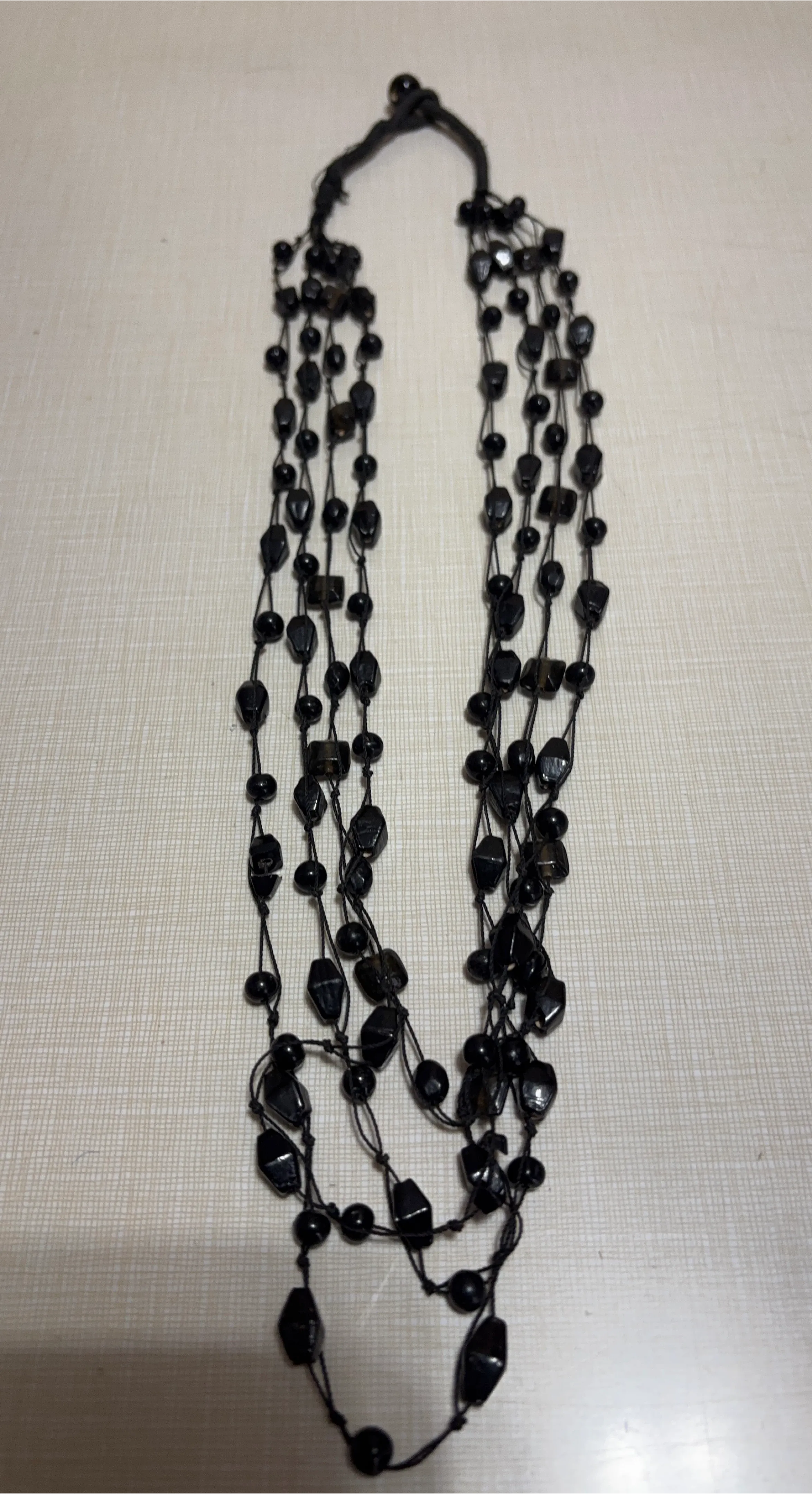 A beautiful black beaded necklace, perfect for adding a touch of elegance to any outfit