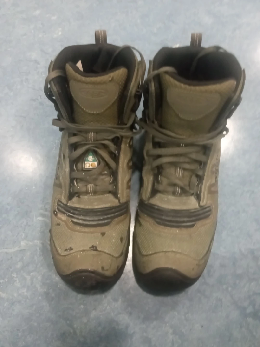 KEEN Utility work boots. Size 13D USA, 47 EU, 12 UK, 31 CM. CSA Standard Z195-14 approved for grade 1 safety footwear. Made in Cambodia.
