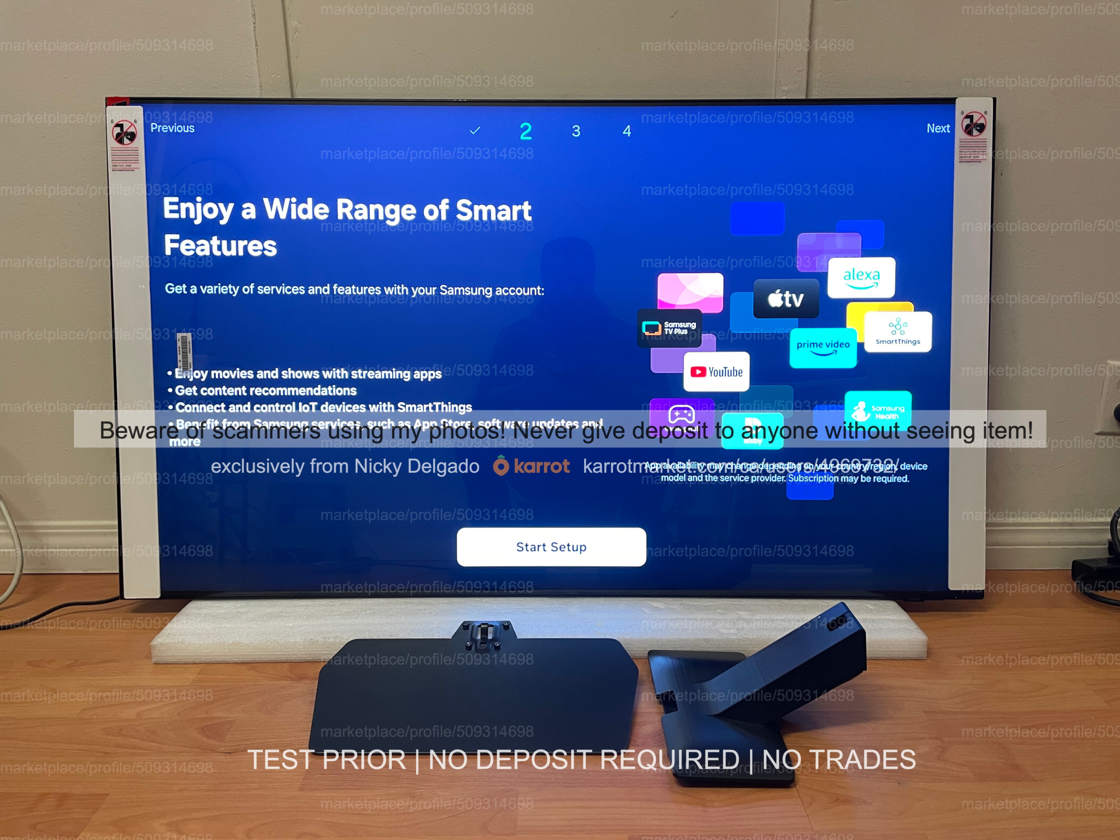 Come with all accessories - legs/ stand/ remote/ power supply and box.
