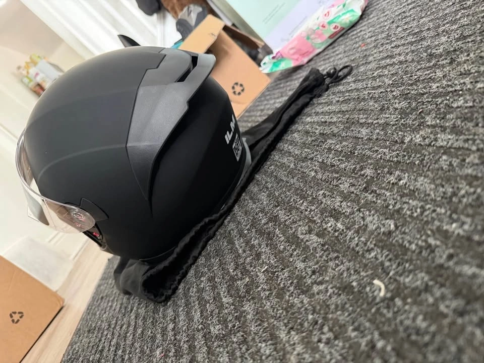 Brand new ILM full face motorcycle helmet in size XL. Features a sleek matte black finish and a quick release chin strap. The visor still has its protective film on it. Comes with a black dust bag. DOT certified.