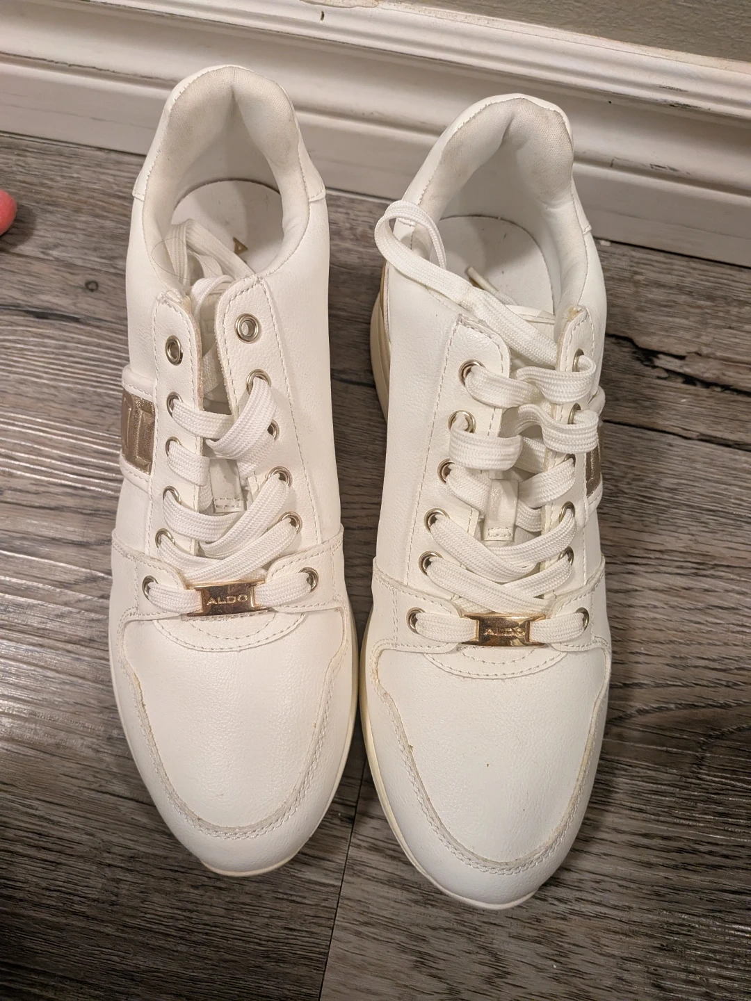 White ALDO Sneakers with Gold Accents - Size 9