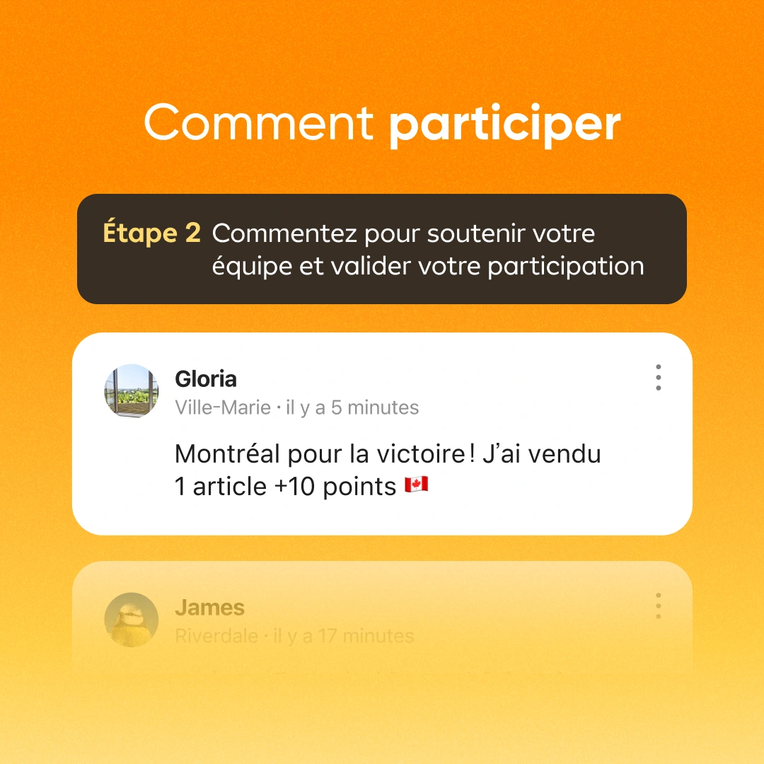 Étape 2 – Commentez pour soutenir votre équipe et valider votre participation.