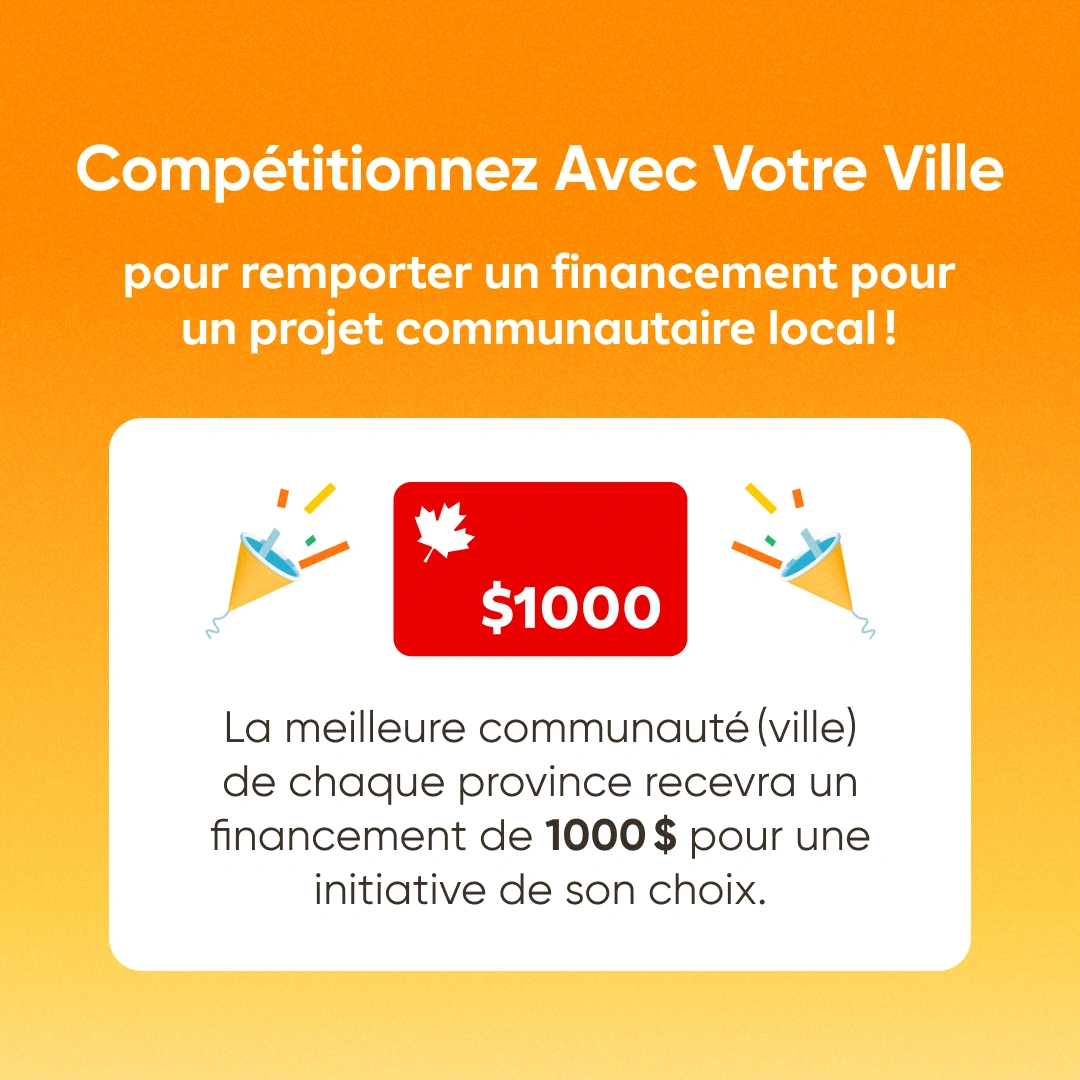La communauté (ville) en tête dans chaque province recevra 1000 $ pour financer une initiative de son choix.