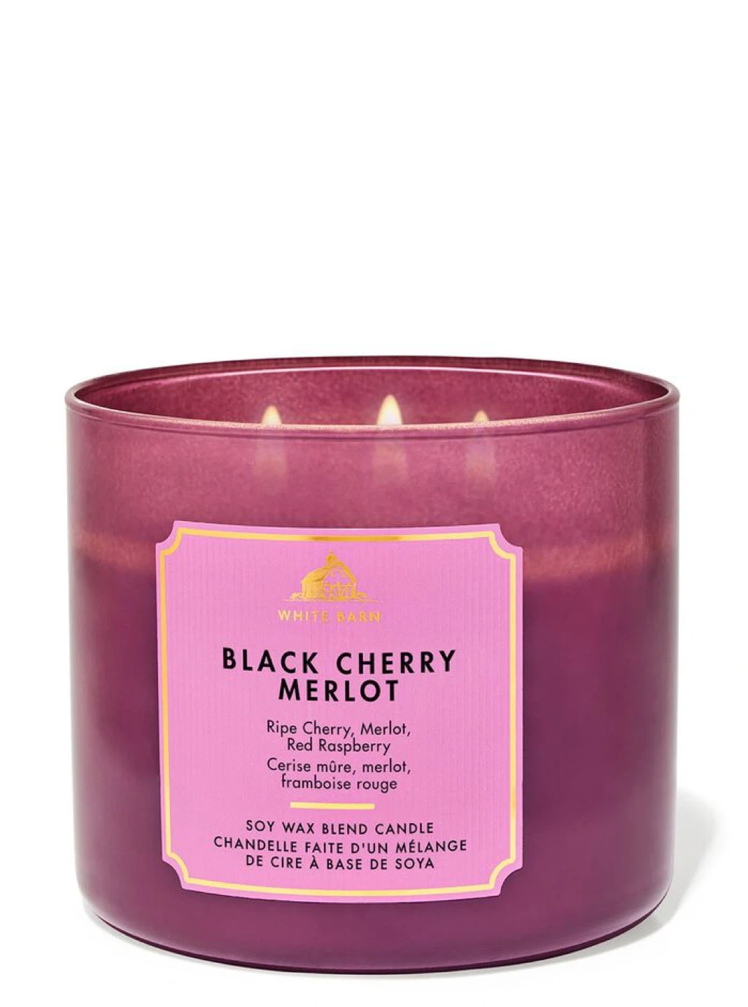 This is a White Barn Black Cherry Merlot 3-wick candle. It's a soy wax blend.