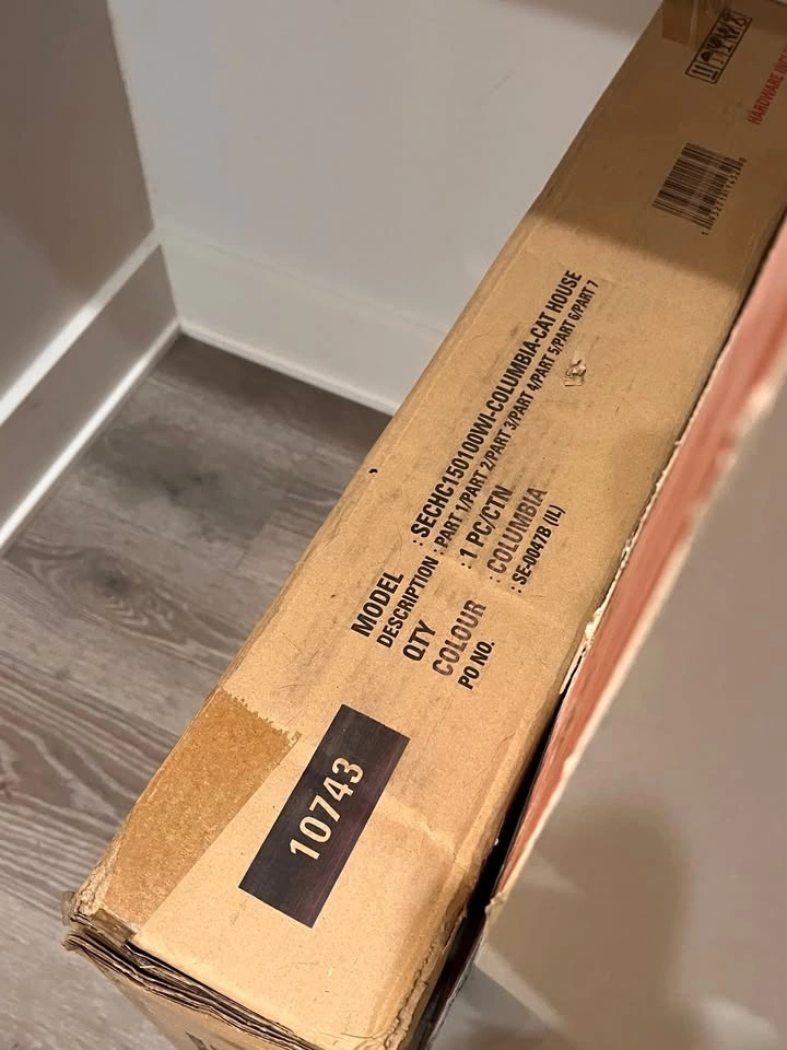 Bought years ago and never opened, now it is discontinued and I can't find an actual photo or listing of it. I am putting a photo of another so you can get a sense of the style, but this one is a vertical version so it can double as a side table (essentially you hide you cat's little box in it.) There's a photo on the box. If I recall the color is a medium walnut brown, similar to the example photo. I don't have the measurements, because it is still in the box.
