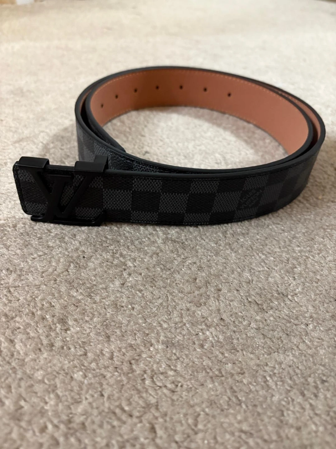 Selling a Louis Vuitton belt with the Damier Graphite pattern. It features a black buckle and is made in France. It's in great condition!