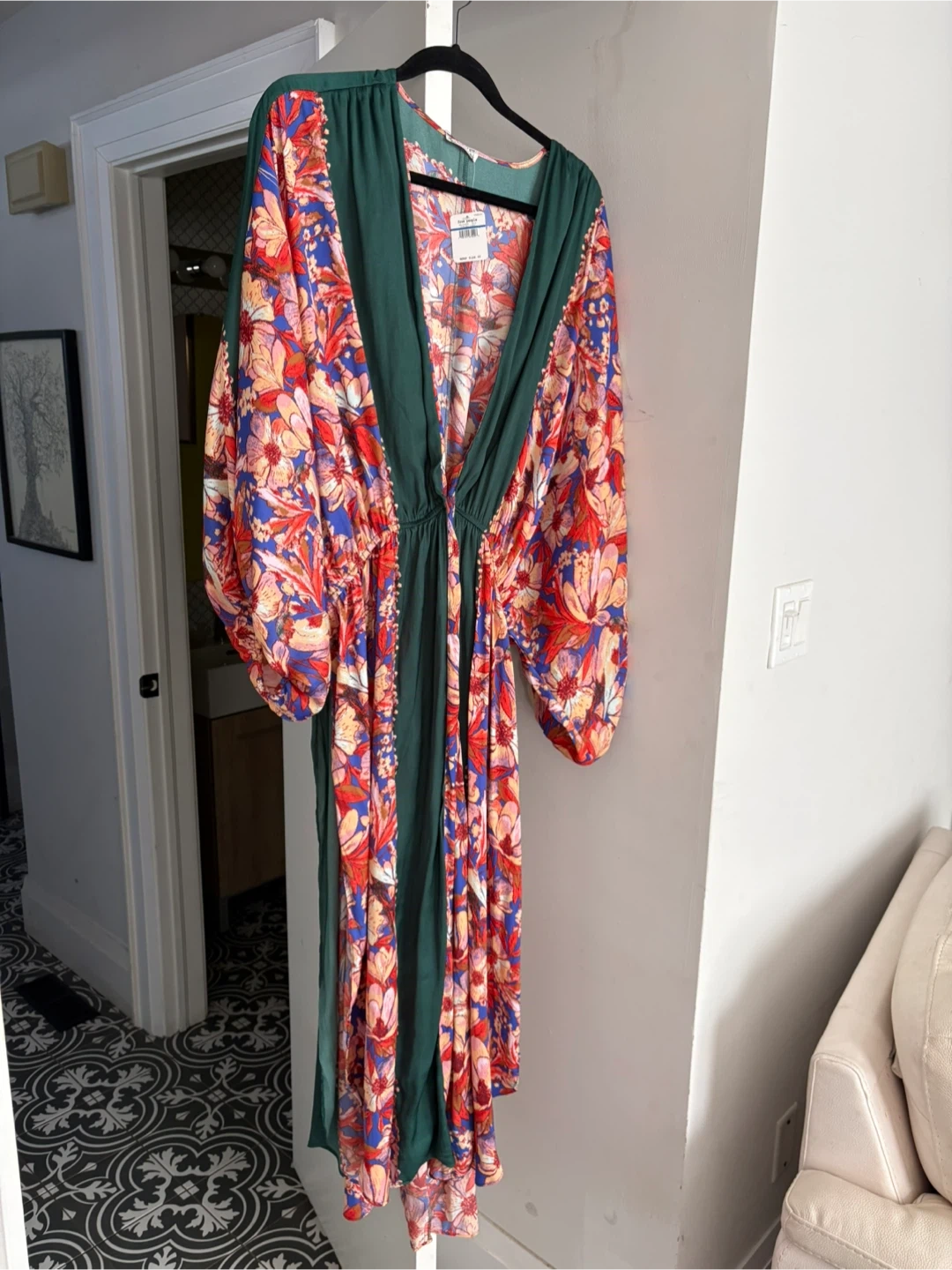 Beautiful BNWT Floor length Free People Maxi Robe with a vibrant floral print. Size XL. Perfect for beach wear /summer nights or over any outfit!