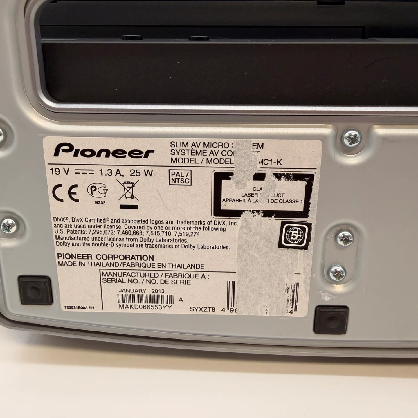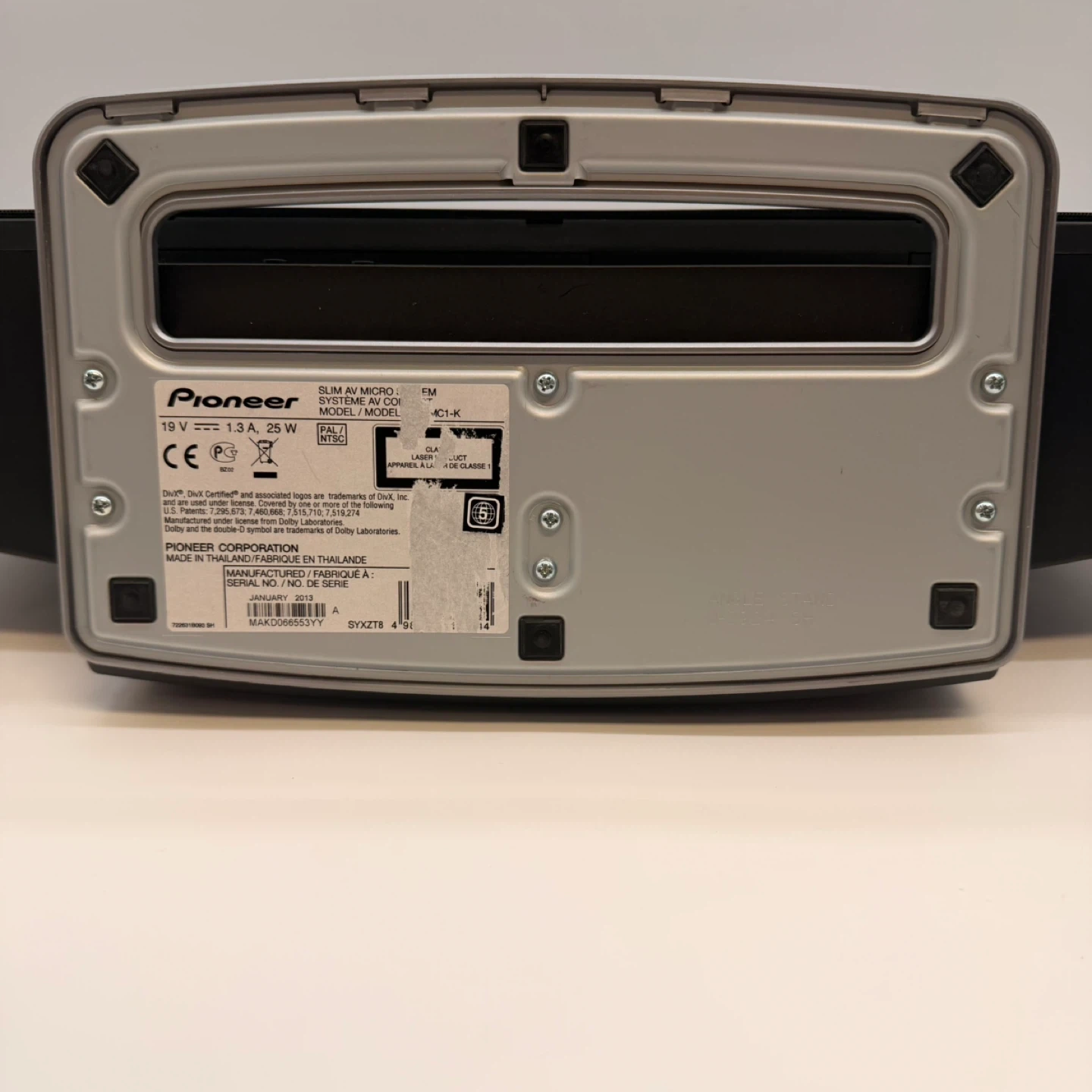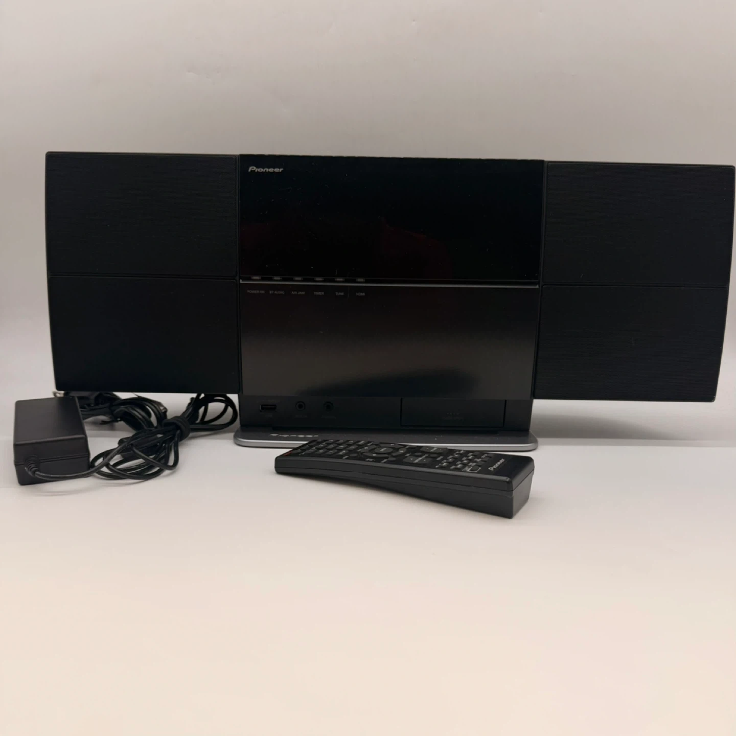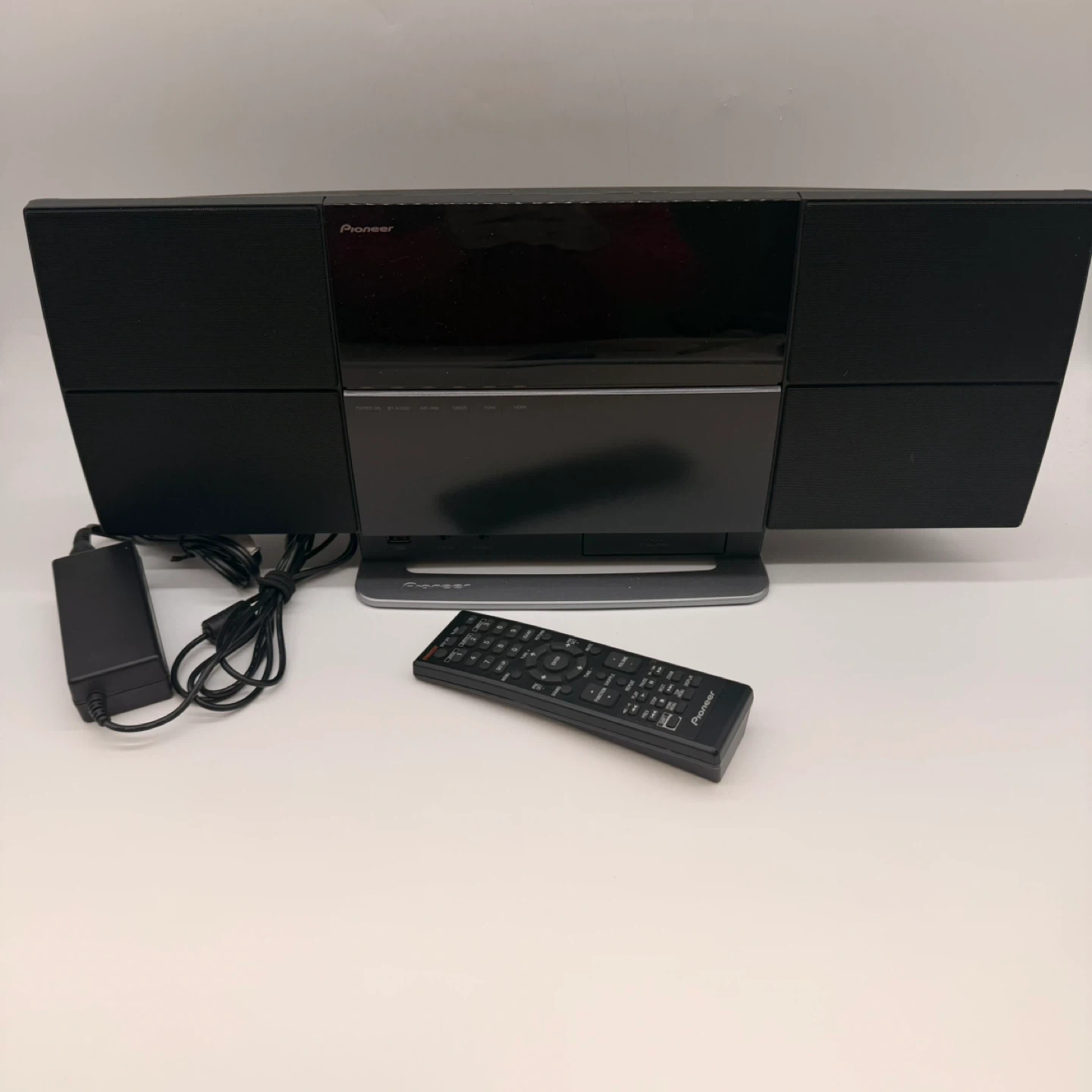 Pioneer X-SMC1-K slim AV micro system in good condition. Includes original Pioneer remote and power adapter. Nice compact all-in-one system with built-in speakers and sleek design. Great for home, office, bedroom, or small space setup. Features include: • CD/DVD slot • USB input • HDMI • FM antenna input • Video out • Slim wall-friendly design Condition: • Pre-owned • Shows normal light cosmetic wear from use • Comes with remote and power adapter • Please review all photos carefully for condition and included items Delivery available with extra fee. 2153 rack30
