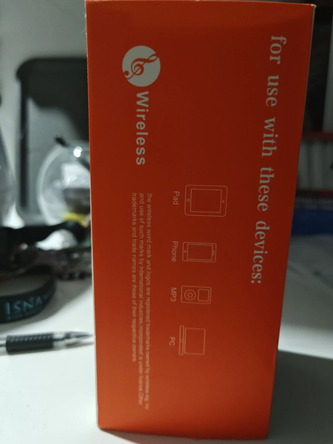 This portable wireless speaker is black. It's suitable for use through Bluetooth. Playtime 3-4 hours according to box