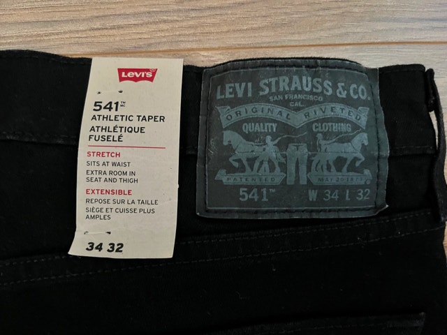 Two pairs of Levi's 541 Athletic Taper jeans, purchased directly from Levi's. One pair is Denim Blue, the other is Jet Black. Both are size 34x32. They are brand new with tags still on. Original MSRP was $89.95 each. Selling both for $120 firm.