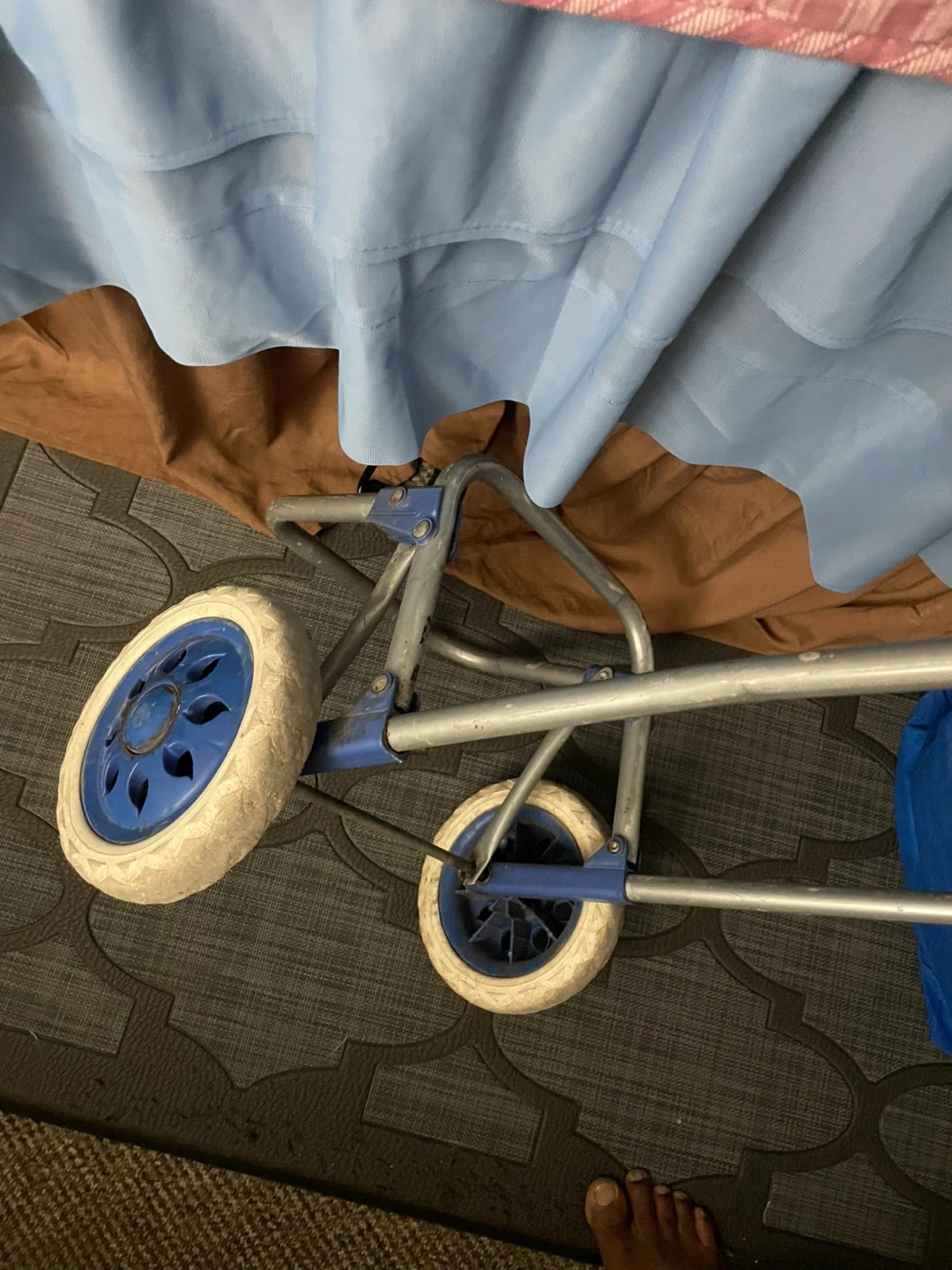 Selling a handy blue folding shopping cart! It's perfect for carrying groceries or laundry, and it folds up for easy storage when you're not using it. The wheels are in good shape and it's ready to go to a new home$5 pickup Markham and Lawrence