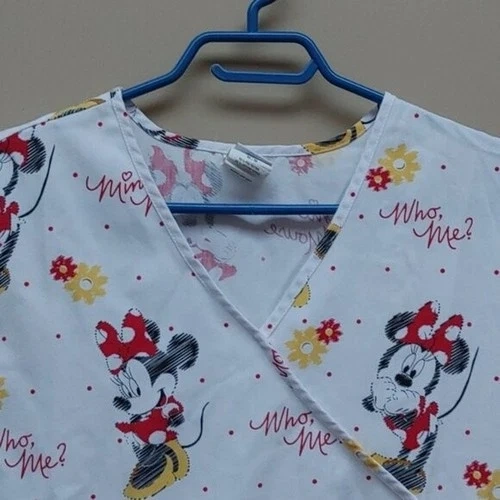 DISNEY Minnie Mouse nurse scrubs top white red yellow gray short
