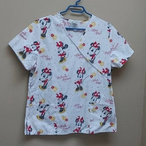 DISNEY Minnie Mouse nurse scrubs top white red yellow gray short