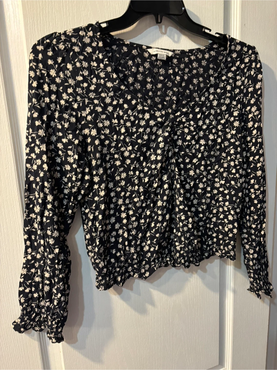 Here's a cute American Eagle long sleeve top with a floral pattern! It's a size M. CASH ONLY