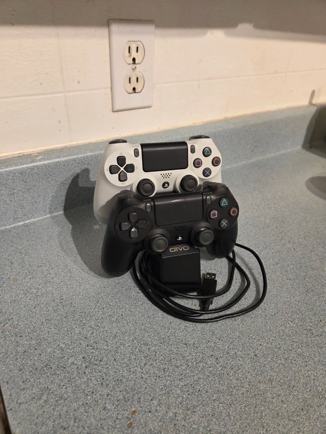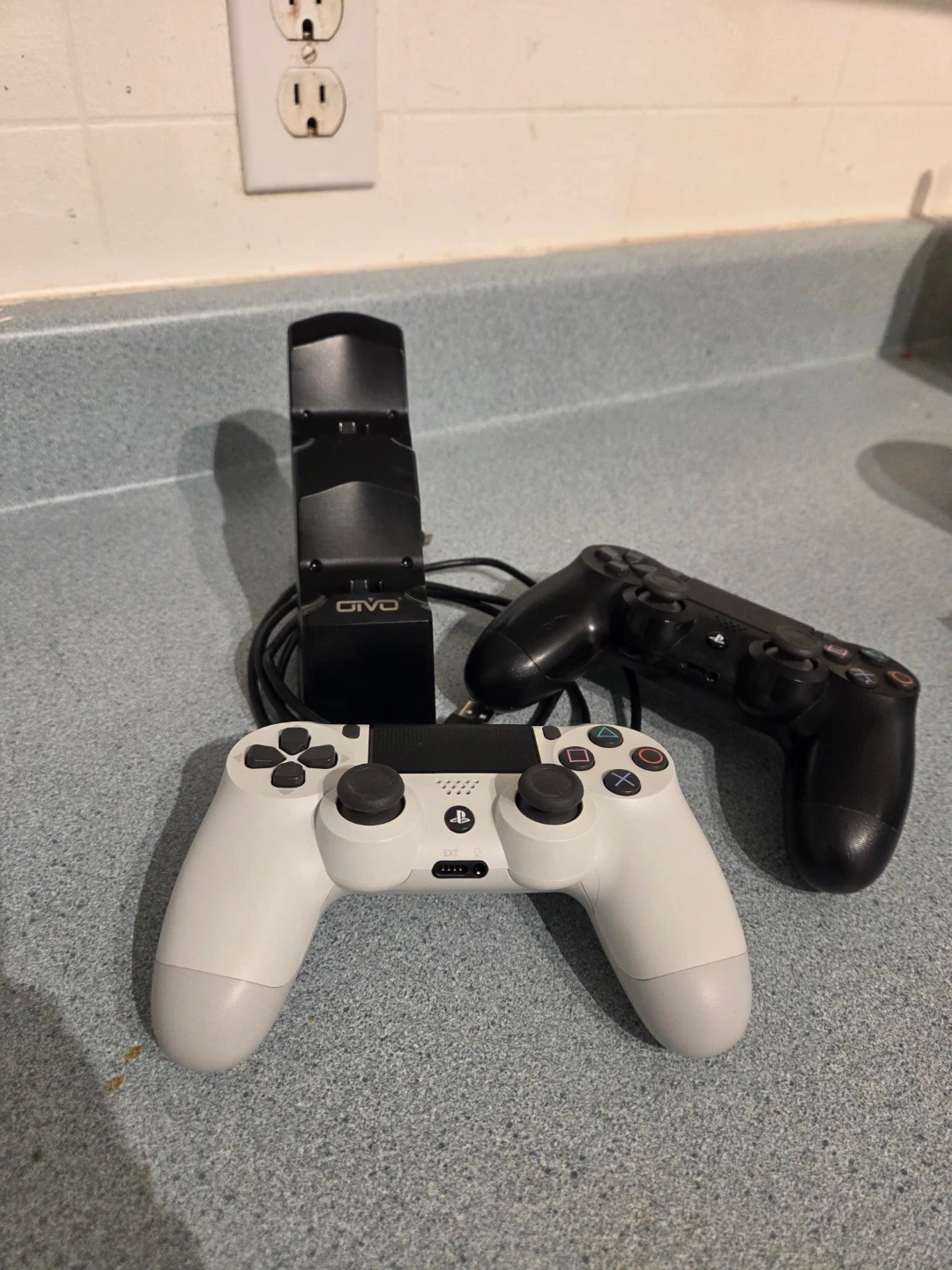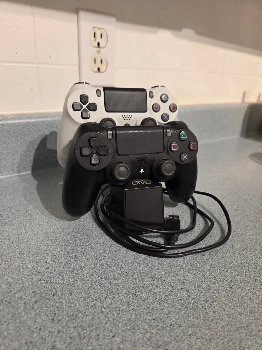 Black GIVO charging dock powers up to two PlayStation 4 controllers (included) simultaneously. It includes a USB charging cable. Keep your controllers ready for your next gaming session!