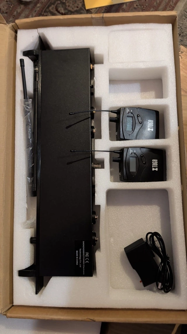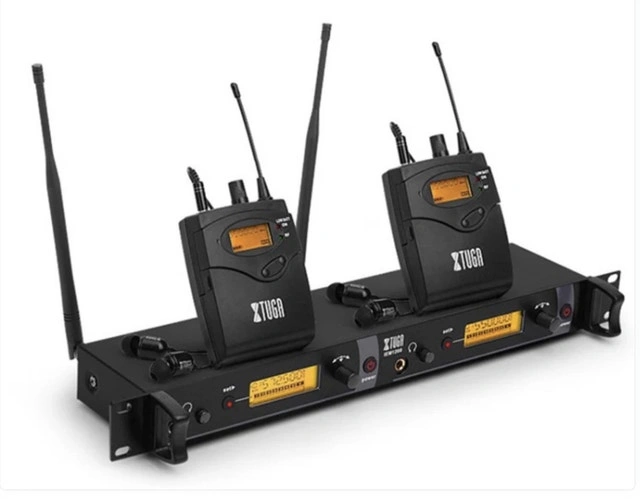 The IEM1200 2-Pack Wireless In-Ear Monitor System (XTUGA brand), is a budget-friendly, UHF-band system for stage performers, providing wireless monitoring for two users with transmitter, two bodypack receivers (with earphones), antennas, and cables, featuring PLL synthesis, 40 channels, and a 300ft range, ideal for replacing traditional monitors on a budget. Key Features & Specifications: Brand: XTUGA (also seen as Tiwa). Type: UHF Wireless In-Ear Monitor System. Channels: 2-channel, with 40 switchable frequencies. Range: Up to 300 feet (100 meters). Components: Includes 1 Transmitter, 2 Bodypack Receivers (with earphones), 2 Antennas, Power Adapter, and Cables. Power: Receivers use 2 AA batteries, offering 5-8 hours of life. Design: Features LCD displays, robust metal housing, and built-in limiters to prevent distortion. Connectivity: XLR/AUX inputs on the transmitter, 3.5mm headphone jack. Usage: Replaces bulky wired monitor setups for stage performances, offering clear, reliable sound for musicians.