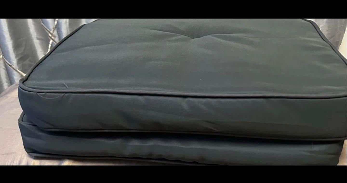 This is a lounge cushion in a grey colour. It's made of durable outdoor fabric. Provides comfy seating for your patio or deck chairs
