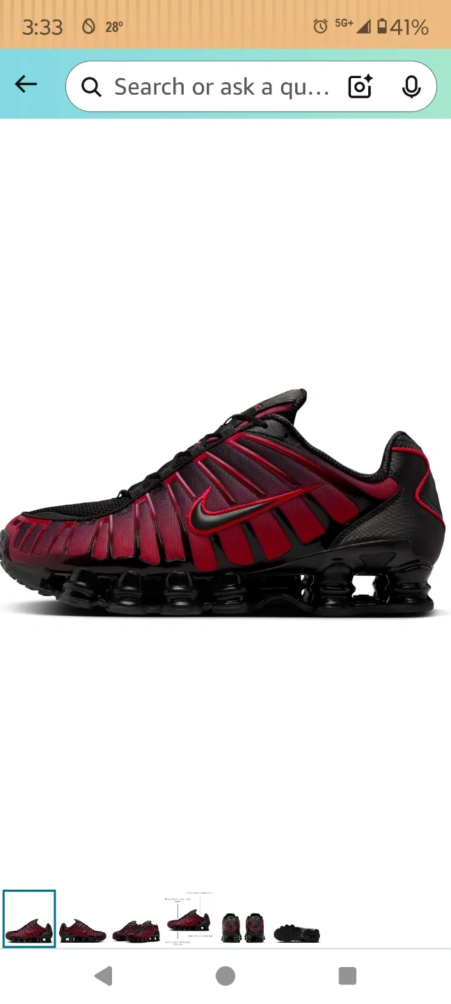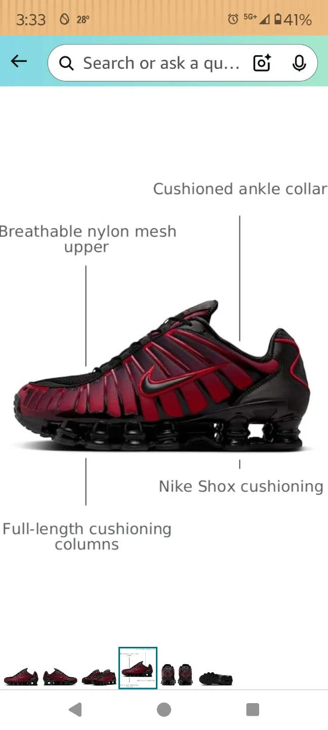 Size 12 These Nike Shox TL shoes revive the iconic 2003 design. They feature a durable, breathable nylon mesh upper with updated colors. The full-length cushioning columns and rubber outsole provide comfort and impact resistance. Lace-up closure.