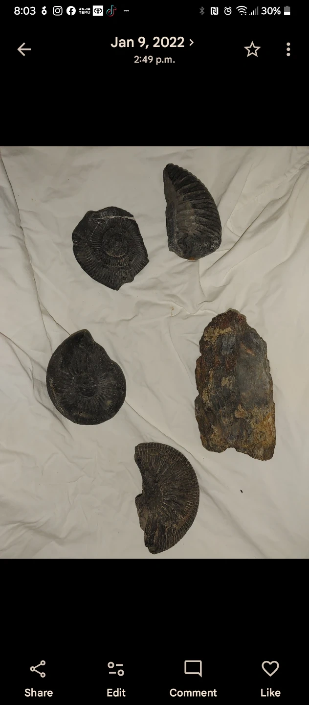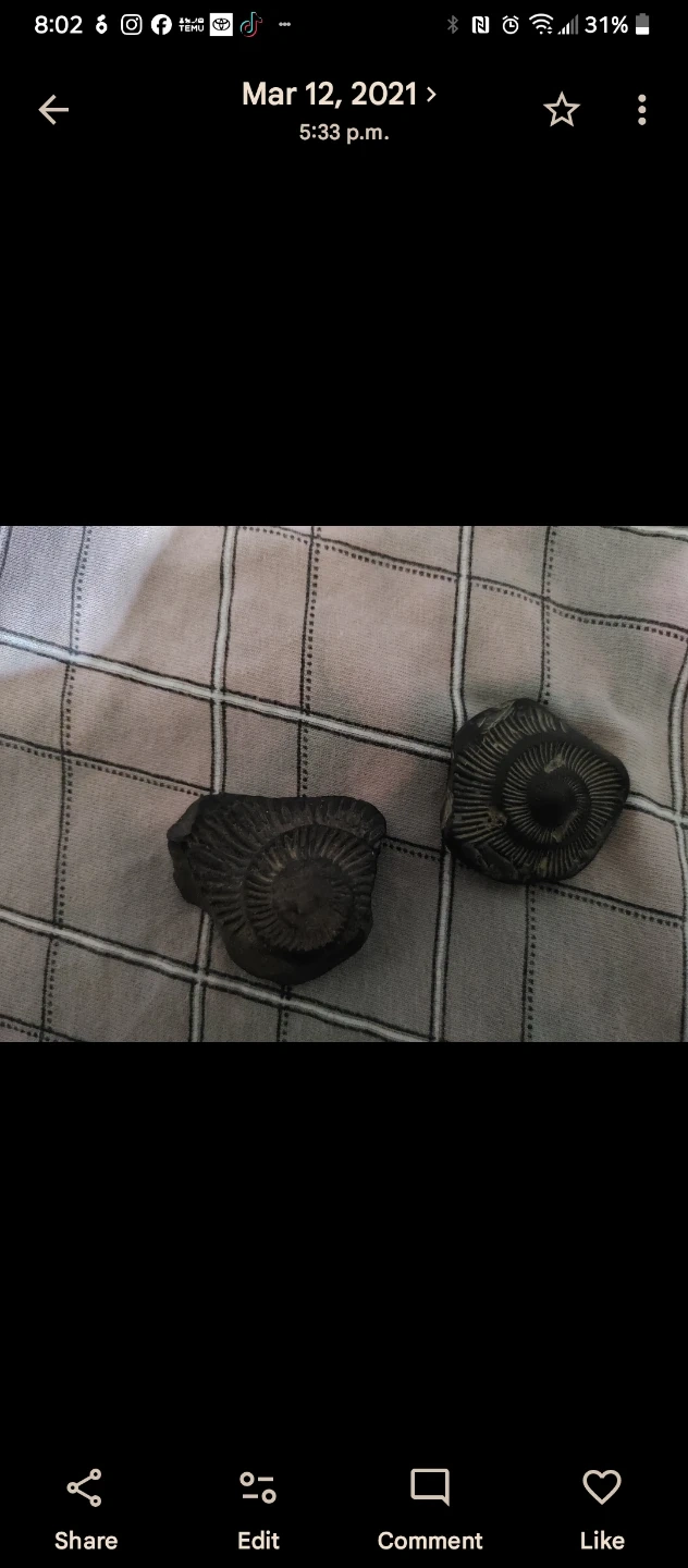 Several ammonite fossils. These are ancient marine invertebrate fossils. They're spiral-shaped and showcase detailed natural patterns. Great for collectors or educational displays! Let me know I have small, medium and large.