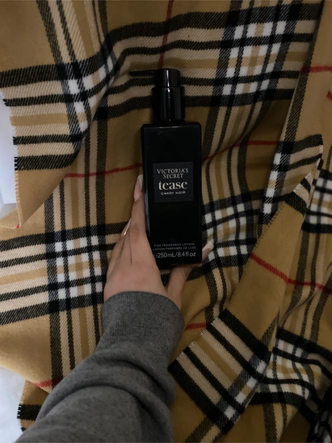 Victoria's Secret Tease Candy Noir fine fragrance lotion. This 250ml bottle comes with a pump for easy application. It's a lovely scent to add to your daily routine!