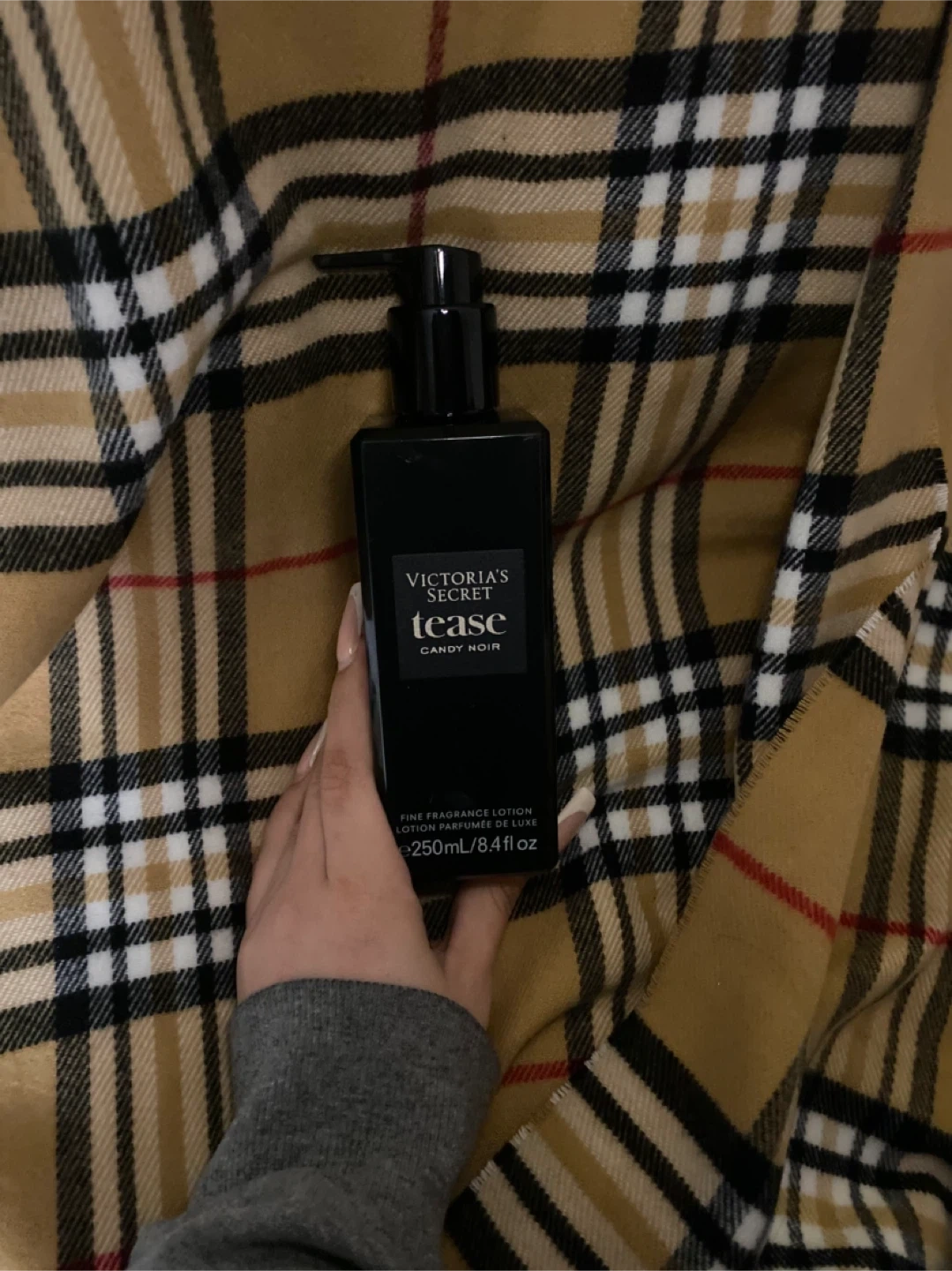Victoria's Secret Tease Candy Noir fine fragrance lotion. This 250ml bottle comes with a pump for easy application. It's a lovely scent to add to your daily routine!