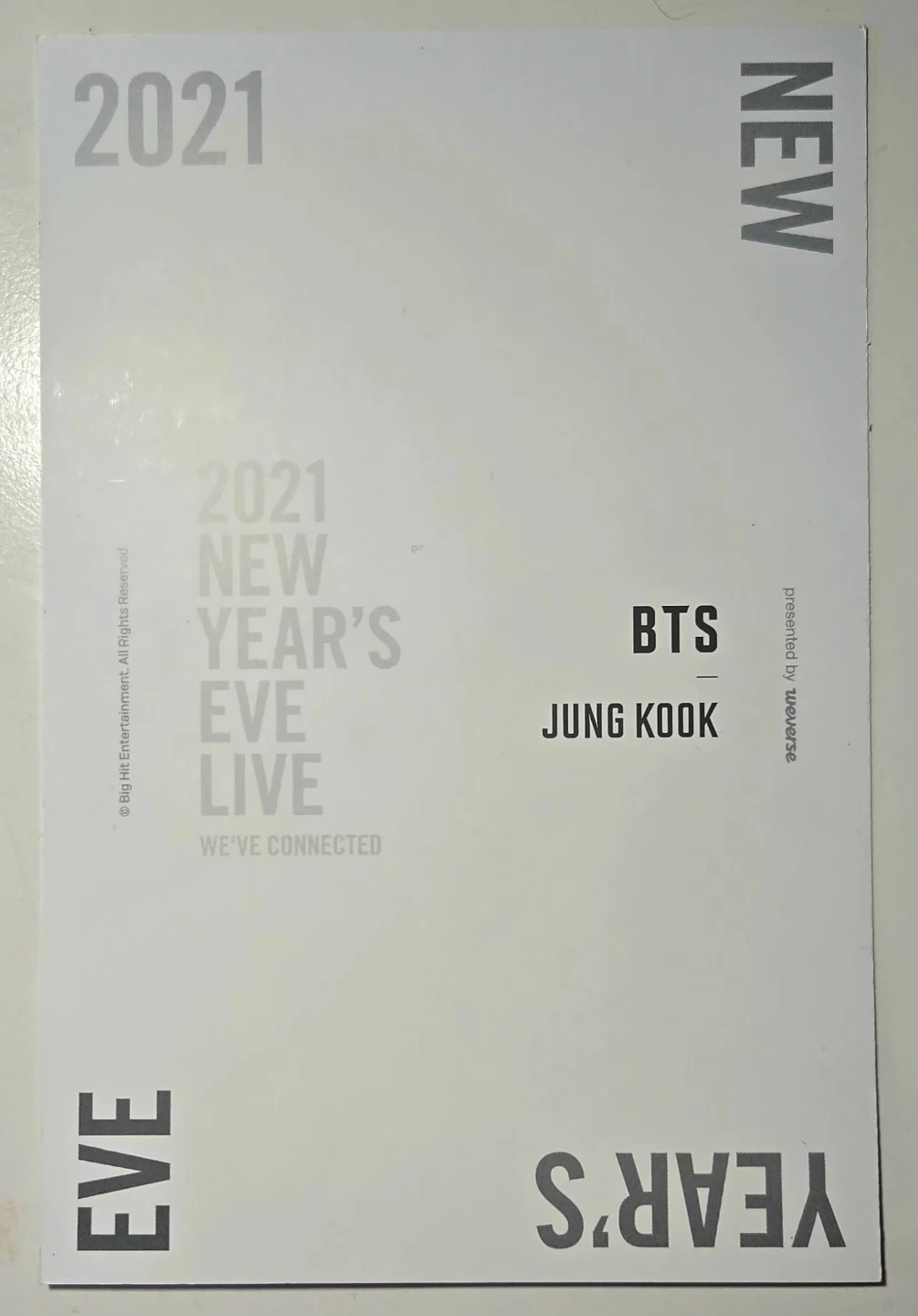 I am selling rare Official Merch of 2021 NYE Live Postcard Set. Trying declutter my bedroom which is why I am selling my BTS Collection. Please let me know if you have any question.