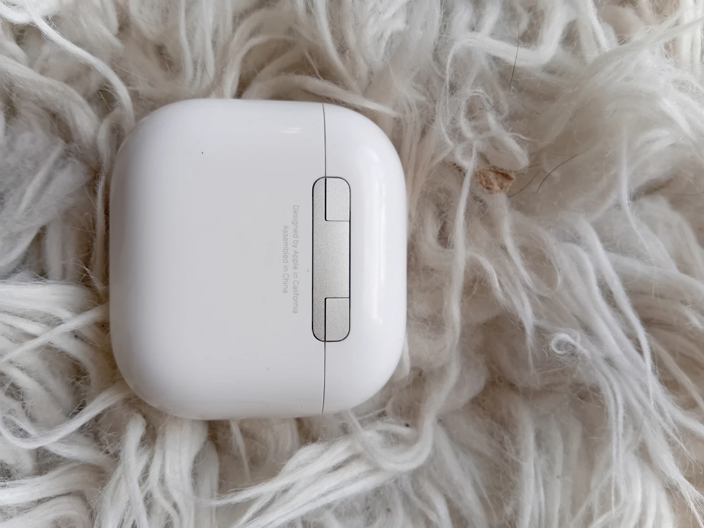 This is a white charging case for Apple AirPods Pro. It's designed by Apple in California and assembled in China. The case is in good condition. Air pods and charger included.