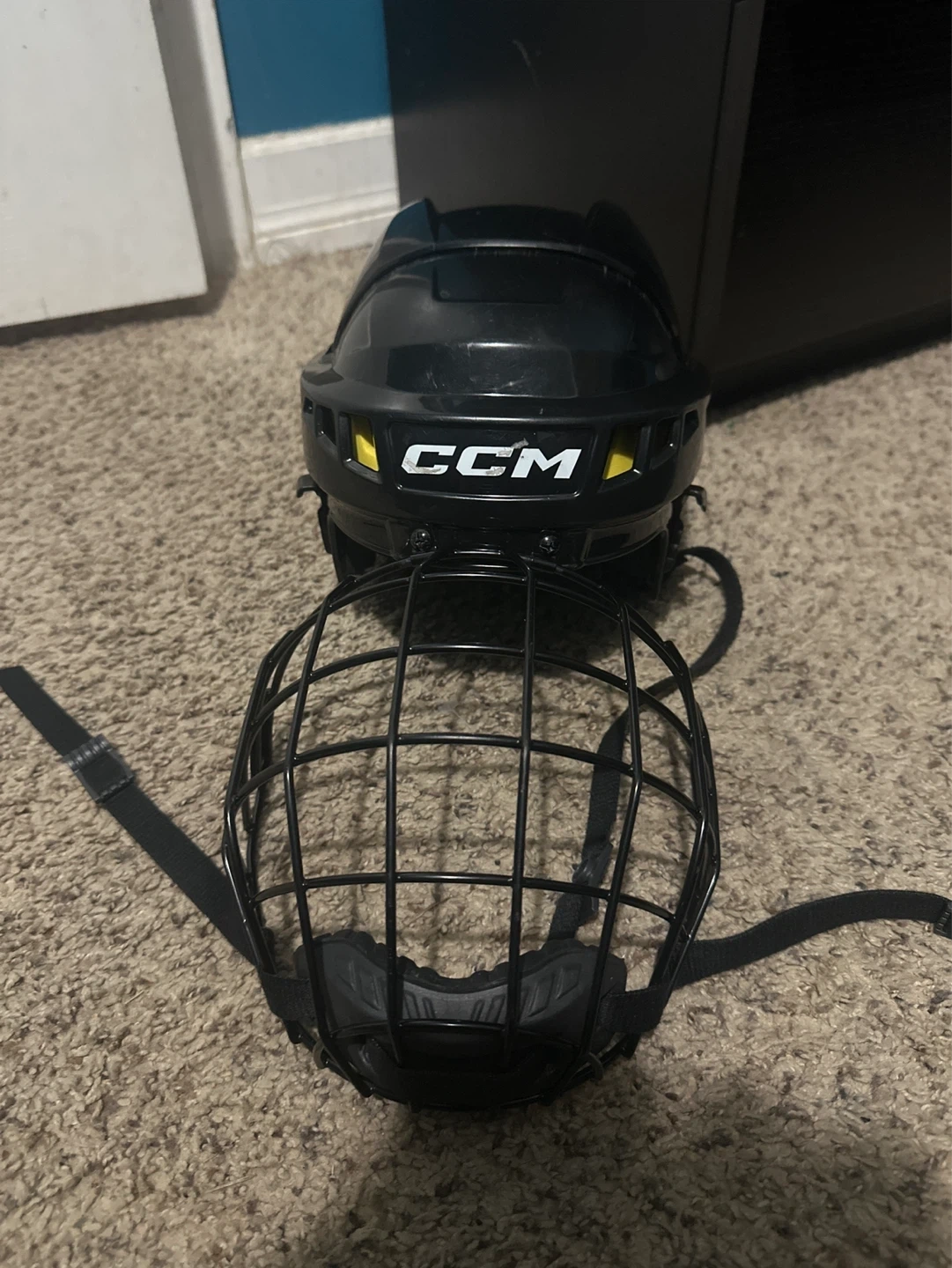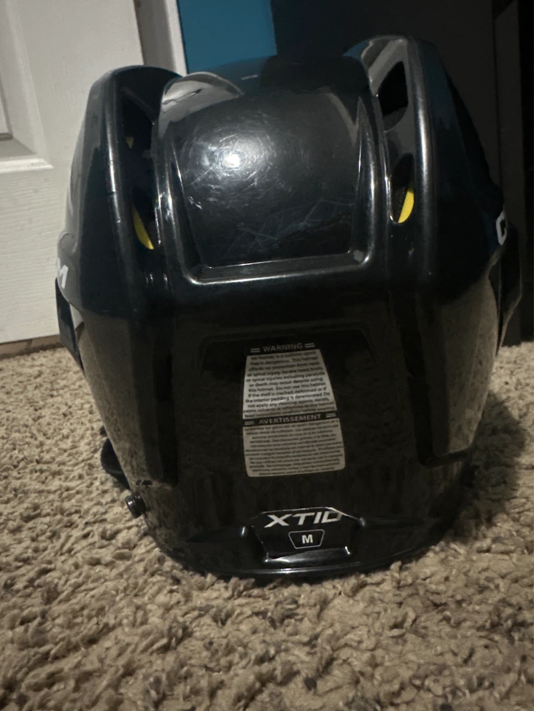 CCM XTID hockey helmet and cage combo. Comes in black, size junior medium. This helmet offers protection for playing hockey. CSA certified.