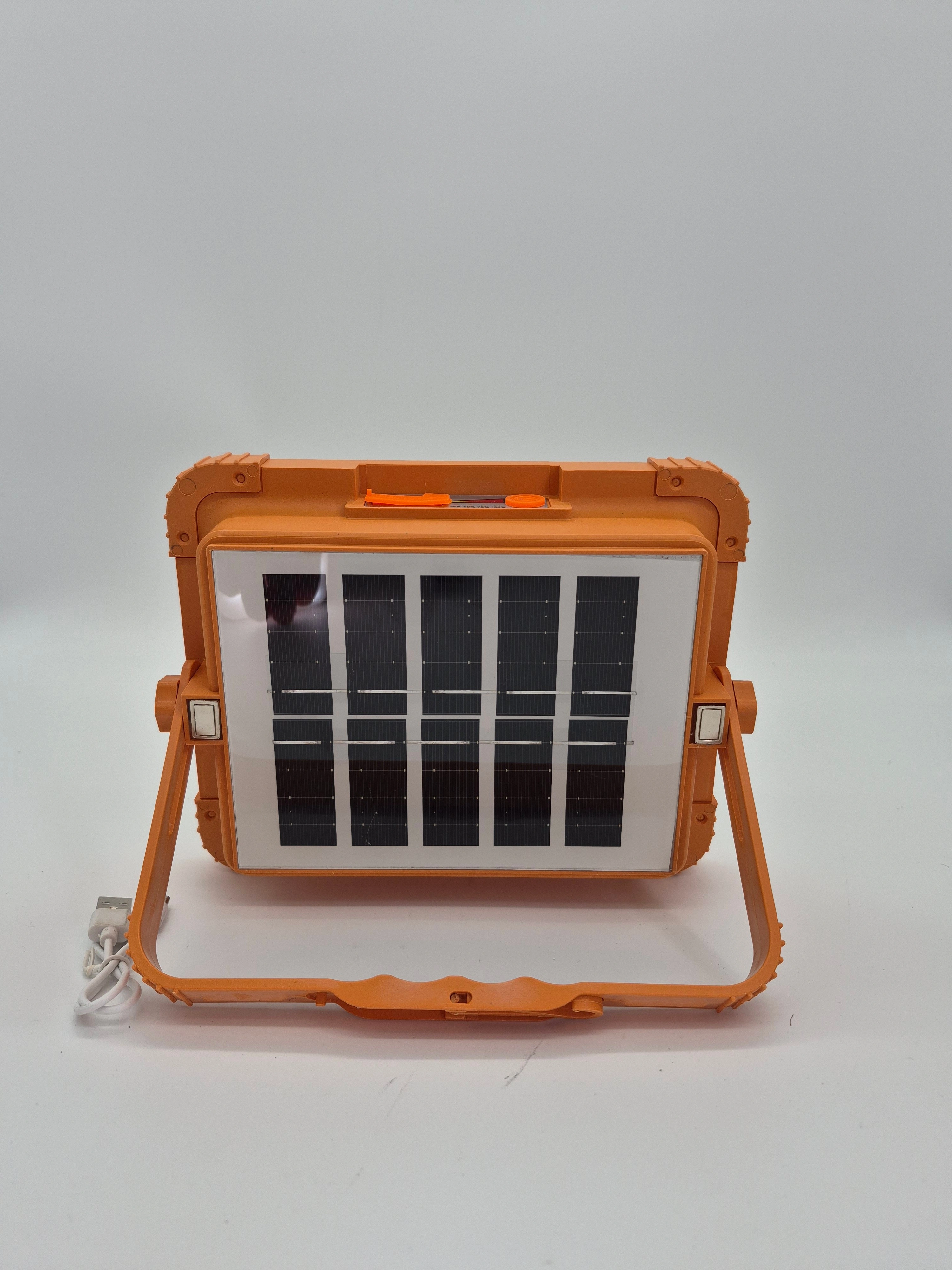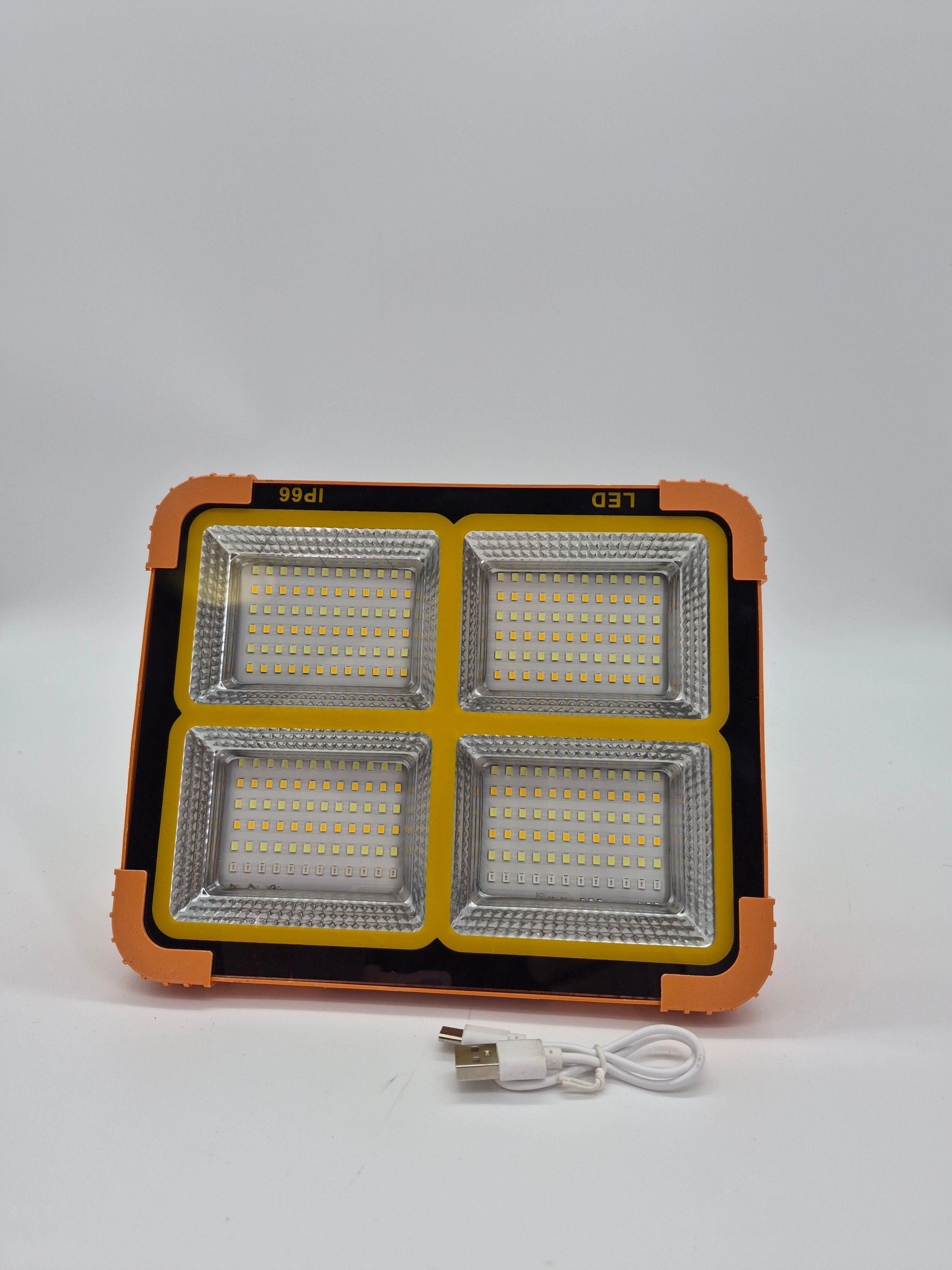 Super bright rechargeable LED flood light with both solar and USB charging. Reliable lighting anywhere, anytime.