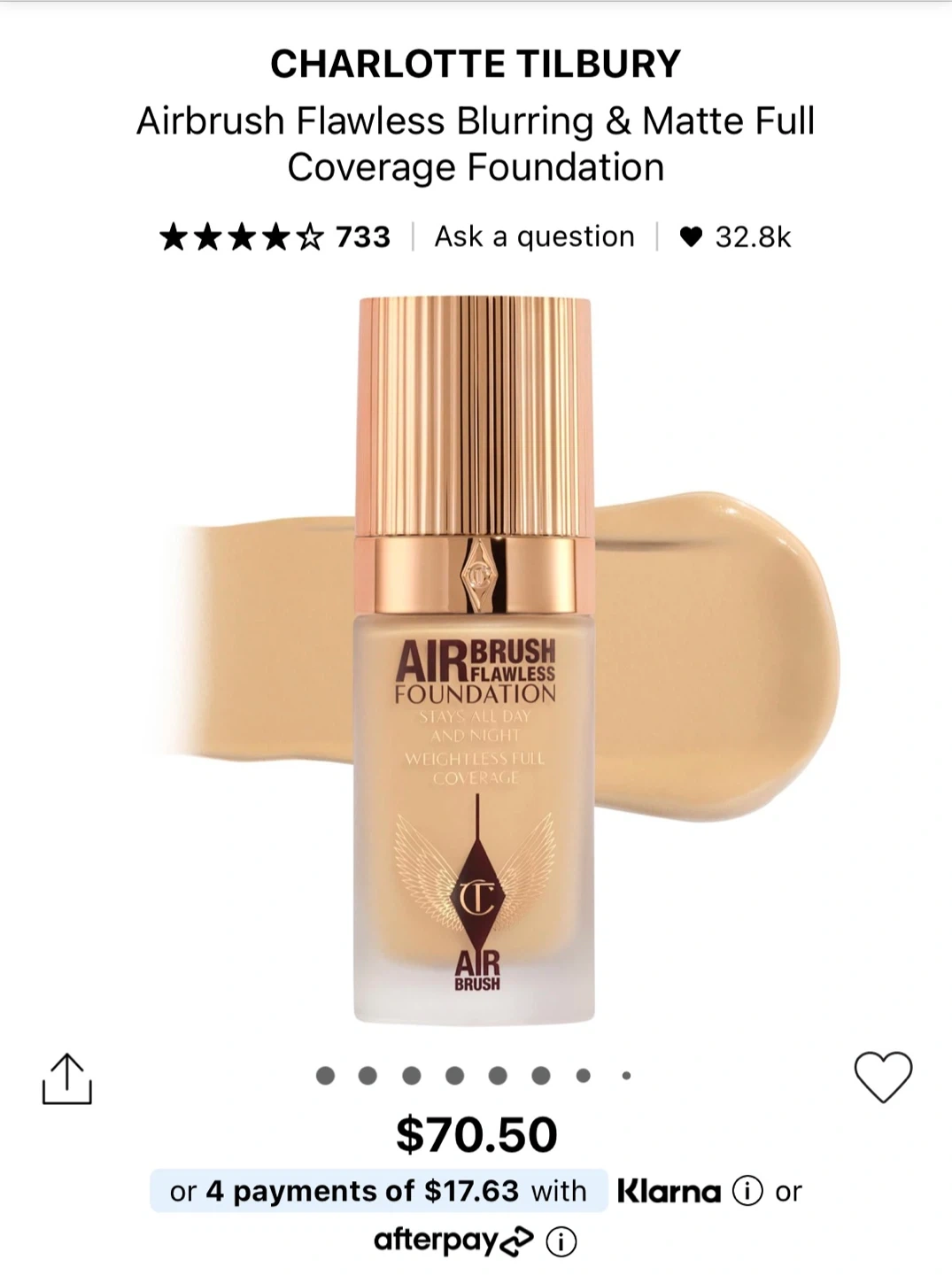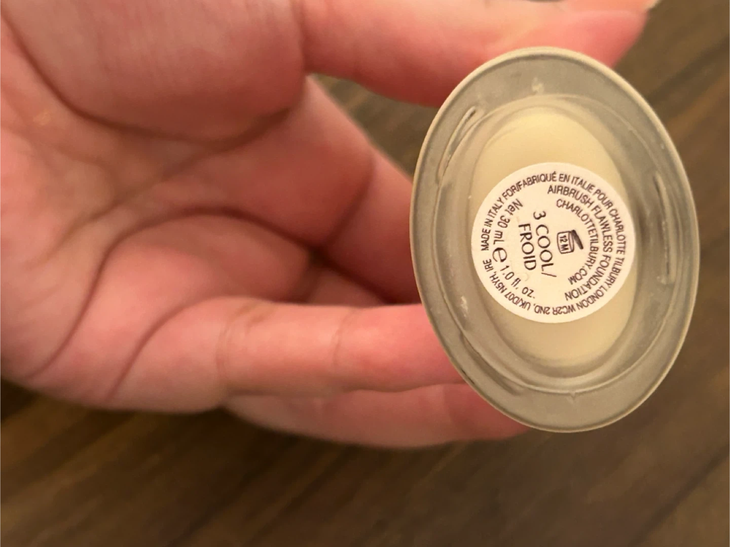 Charlotte Tilbury Airbrush Flawless foundation in shade 3 Cool Froid. It's a matte full coverage foundation. This bottle contains 30 mL or 1.0 fl. oz. of product.