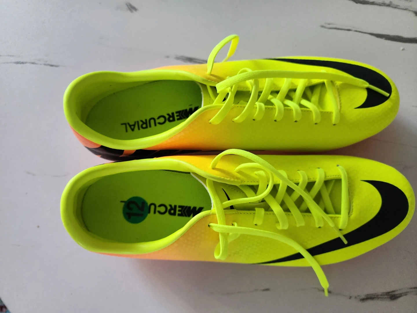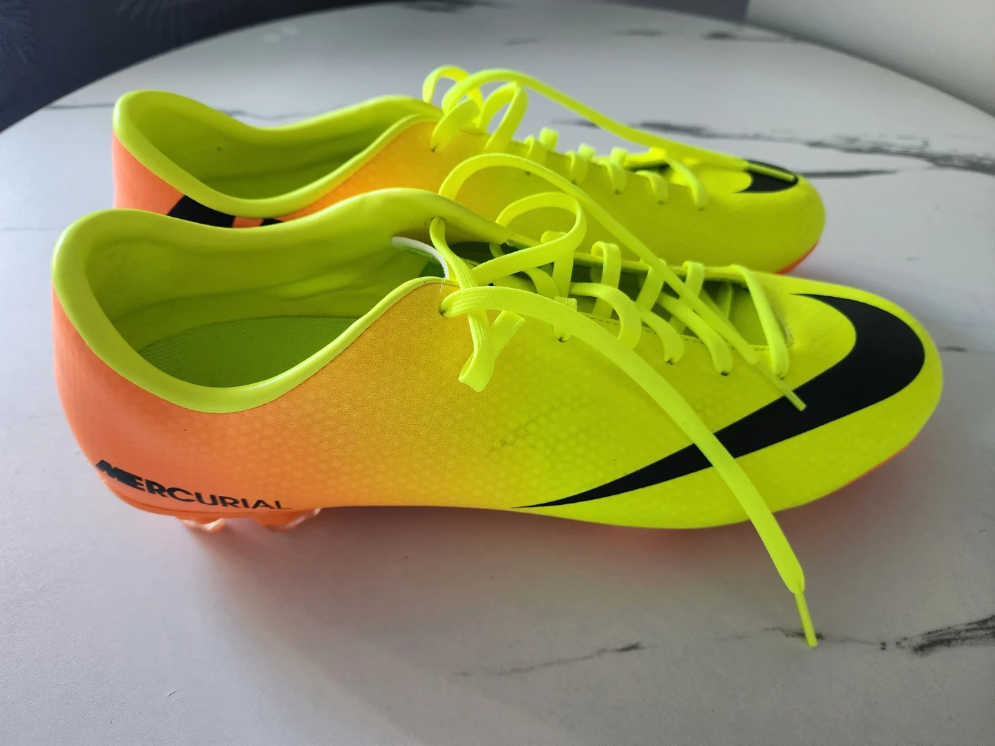 Buy & SellNike Mercurial Soccer CleatsNike Mercurial Soccer Cleats$59Neon yellow and orange Nike Mercurial soccer cleats. Size 12 youth. These cleats are designed for speed and agility on the field.ConditionNewWHERE TO MEETroyal city centerView MapSELLERverifiedAliNew Westminister600 reviews1 chats·0 favorites·11 viewsSEND CHAT TO SELLERHi Ali! I’m interested in your listing.Hi Ali! I’m interested in your listing.Get the Karrot app to chatSign In to chat